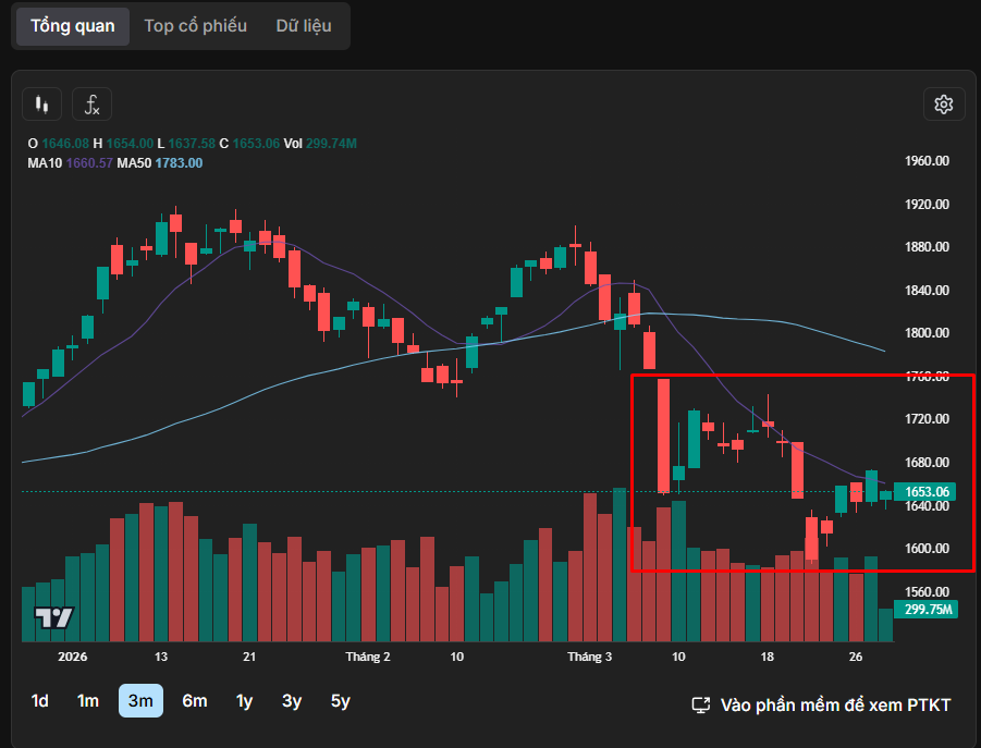 Nếu thanh khoản giảm hoặc thấp trong kịch bản điều chỉnh này, sẽ là tín hiệu tích cực để kỳ vọng thị trường có nhịp hồi kỹ thuật về vùng 1.700 điểm. Ngược lại, kịch bản xấu diễn ra khi thị trường không giữ được vùng hỗ trợ 1.580 – 1.600 điểm, áp lực bán sẽ đẩy thanh khoản tăng mạnh để xác nhận thị trường chuyển từ pha phân phối hơn 6 tháng qua sang giảm điểm.