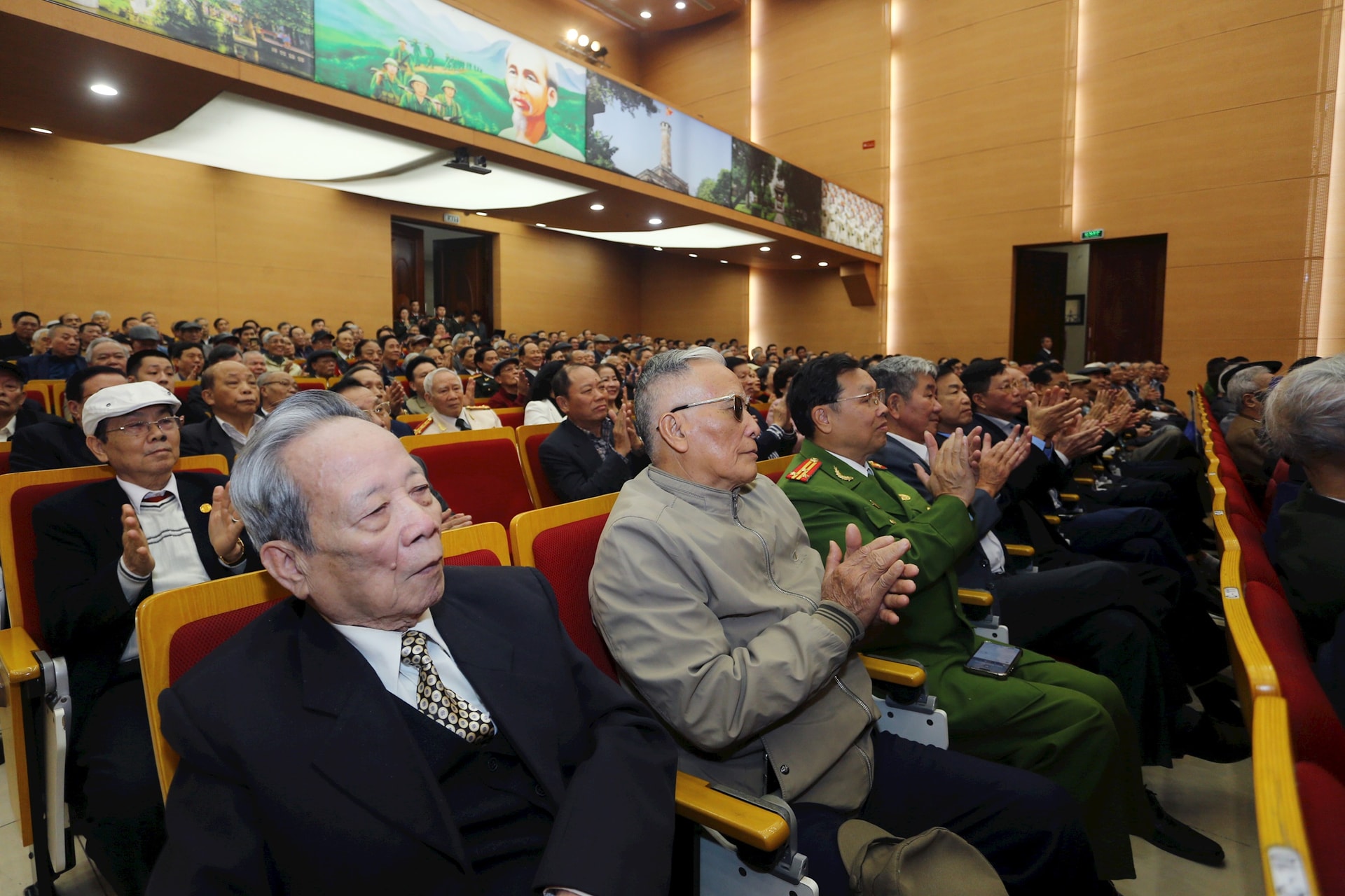 Ủy viên Bộ Chính trị, Bí thư Thành ủy Hà Nội Nguyễn Duy Ngọc; Ủy viên Trung ương Đảng, Phó Bí thư Thành ủy, Chủ tịch UBND thành phố Hà Nội Vũ Đại Thắng dự buổi gặp mặt.