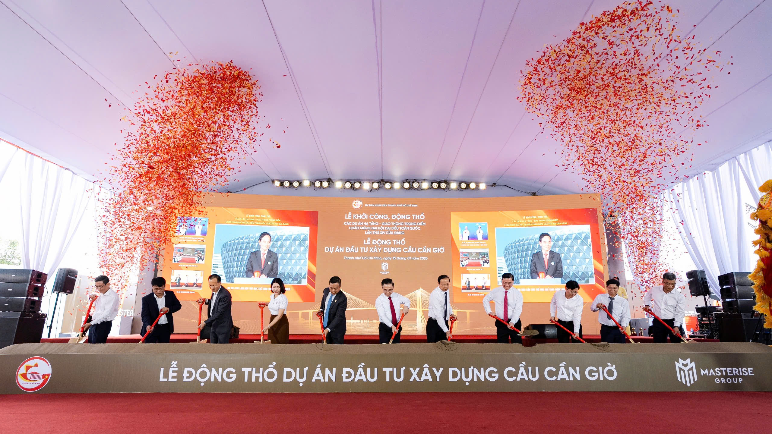 Hạ tầng TP.HCM đang bước vào giai đoạn phát triển mạnh mẽ nhờ hàng loạt dự án hạ tầng - giao thông trọng điểm với tổng vốn đầu tư lên đến 240.000 tỷ đồng đã thông qua chủ trương và chính thức khởi công. Trong đó, lễ động thổ dự án đầu tư xây dựng cầu Cần giờ diễn ra ngày 15/01 nằm trong chuỗi hoạt động chào mừng Đại hội đại biểu toàn quốc lần thứ XIV của Đảng, đã đánh dấu mốc đưa TP.HCM hướng tới tầm nhìn siêu đô thị tương lai, củng cố vị thế Thành phố trong khu vực và quốc tế.