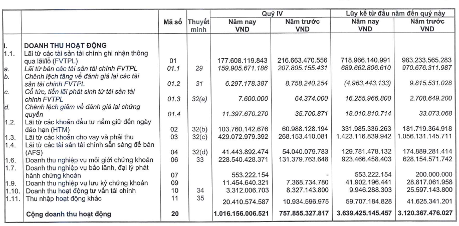 Chi phí hoạt động trong quý 4/2025 được kiểm soát tốt, ở mức 310 tỷ đồng, giảm 6% so với cùng kỳ, chủ yếu nhờ khoản lỗ từ tài sản tài chính FVTPL thu hẹp 21%, xuống còn 137 tỷ đồng.