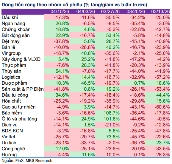 Dòng tiền hiện đang tập trung vào các nhóm cổ phiếu mang tính thị trường và chu kỳ, bao gồm ngân hàng, chứng khoán, bất động sản, xây dựng – vật liệu xây dựng và nhóm liên quan đến đầu tư công. Đây cũng là các nhóm ghi nhận mức độ tập trung vốn cao nhất trong nhiều tuần gần đây. Ngoài ra, nhóm cổ phiếu Midcap được đánh giá có dư địa tốt hơn trong giai đoạn này, khi vừa thu hút dòng tiền vừa có nền giá tích lũy tương đối ổn định.