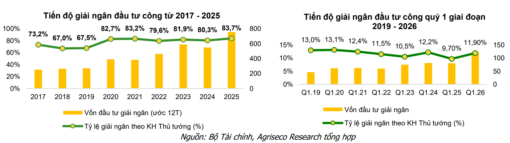 Theo đánh giá của chuyên gia tại Agriseco Research, việc thúc đẩy giải ngân đầu tư công kỳ vọng sẽ tạo ra các tác động lan tỏa đến nhiều nhóm ngành như vật liệu xây dựng, xây dựng hạ tầng, xây lắp điện, bất động sản, logistics. Đầu tư công được coi là động lực tăng trưởng kinh tế trong bối cảnh các động lực tăng trưởng kinh tế khác như tiêu dùng, xuất khẩu dự kiến tăng chậm lại trong bối cảnh kinh tế toàn cầu biến động.