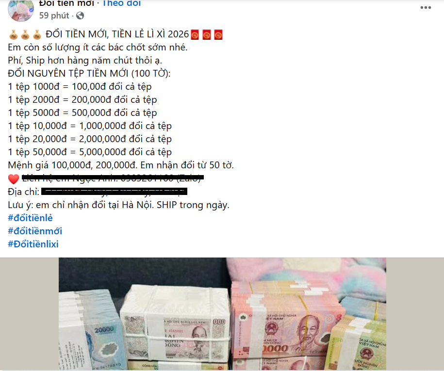 Càng gần Tết Nguyên đán, trên mạng xã hội càng xuất hiện nhiều quảng cáo đổi tiền mới, tiền lẻ với phí thấp. Công an nhiều tỉnh, thành đồng loạt cảnh báo người dân về thủ đoạn lừa đảo liên quan đến dịch vụ này.