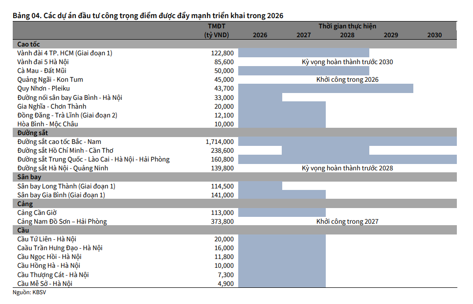 Không chỉ dừng ở năm 2026, kế hoạch đầu tư công giai đoạn 2026 - 2030 được Bộ Tài chính công bố với tổng quy mô lên tới 8,5 triệu tỷ đồng, tương đương bình quân khoảng 1,7 triệu tỷ đồng mỗi năm. Quy mô vốn này được đánh giá là “chất xúc tác” quan trọng giúp nâng cao nội lực nền kinh tế, đồng thời tạo chu kỳ tăng trưởng bền vững hơn cho các ngành sản xuất vật liệu cơ bản.