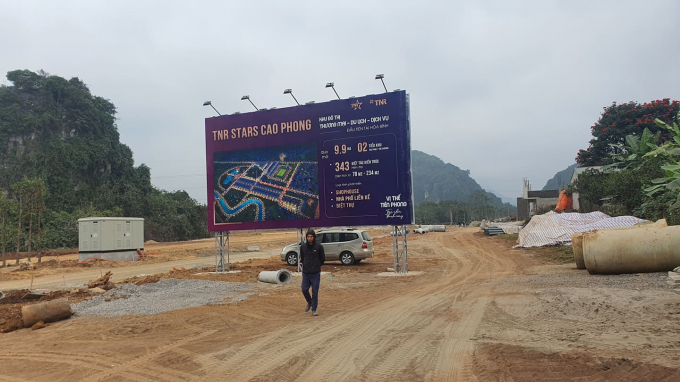 Theo thông tin quảng cáo, Dự án TNR Stars Cao Phong địa chỉ Thị trấn Cao Phong, huyện Cao Phong, tỉnh Hòa Bình có quy mô 9,9 ha, do Công ty CP đầu tư phát triển bất động sản TNR Holdings Việt Nam làm chủ đầu tư với vốn đầu tư trên 1.000 tỷ đồng với 328 lô liền kề và 16 lô biệt thự với diện tích từ 80 – 300 m2.
