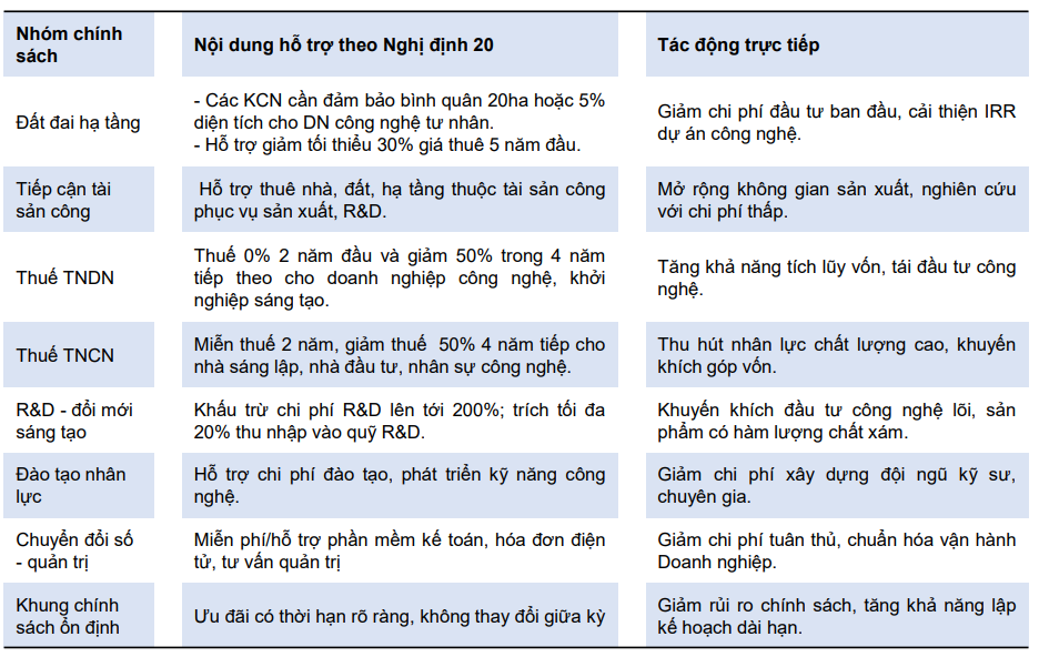 Nghị định 20 đánh dấu bước chuyển quan trọng trong tư duy hỗ trợ kinh tế tư nhân khi chính sách không còn dàn trải mà tập trung trực tiếp vào các chi phí đầu vào mang tính cấu trúc là những rào cản lớn nhất với doanh nghiệp công nghệ trong giai đoạn đầu tư dài, rủi ro cao.