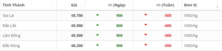 Giá cà phê tại tỉnh Gia Lai, tỉnh Kon Tum đứng ở mức giá 66.700 đồng/kg.