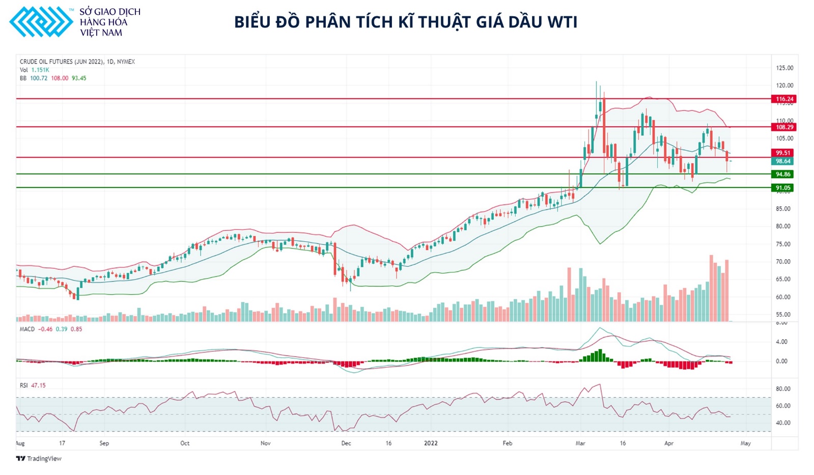Biểu đồ phân tích kĩ thuật giá dầu WTI (Nguồn: Sở giao dịch Hàng hóa Việt Nam)