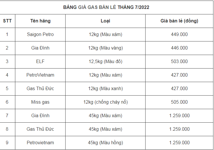 Ở thị trường trong nước, Công ty TNHH một thành viên Dầu khí TP.HCM (Saigon Petro) thông báo, từ ngày 1/7, giá bán gas SP giảm 583 đồng/kg (đã VAT), tương đương giảm 7.000 đồng bình 12kg. Với mức giảm này, mỗi bình gas 12 kg sẽ được bán ở mức 449.000 đồng.