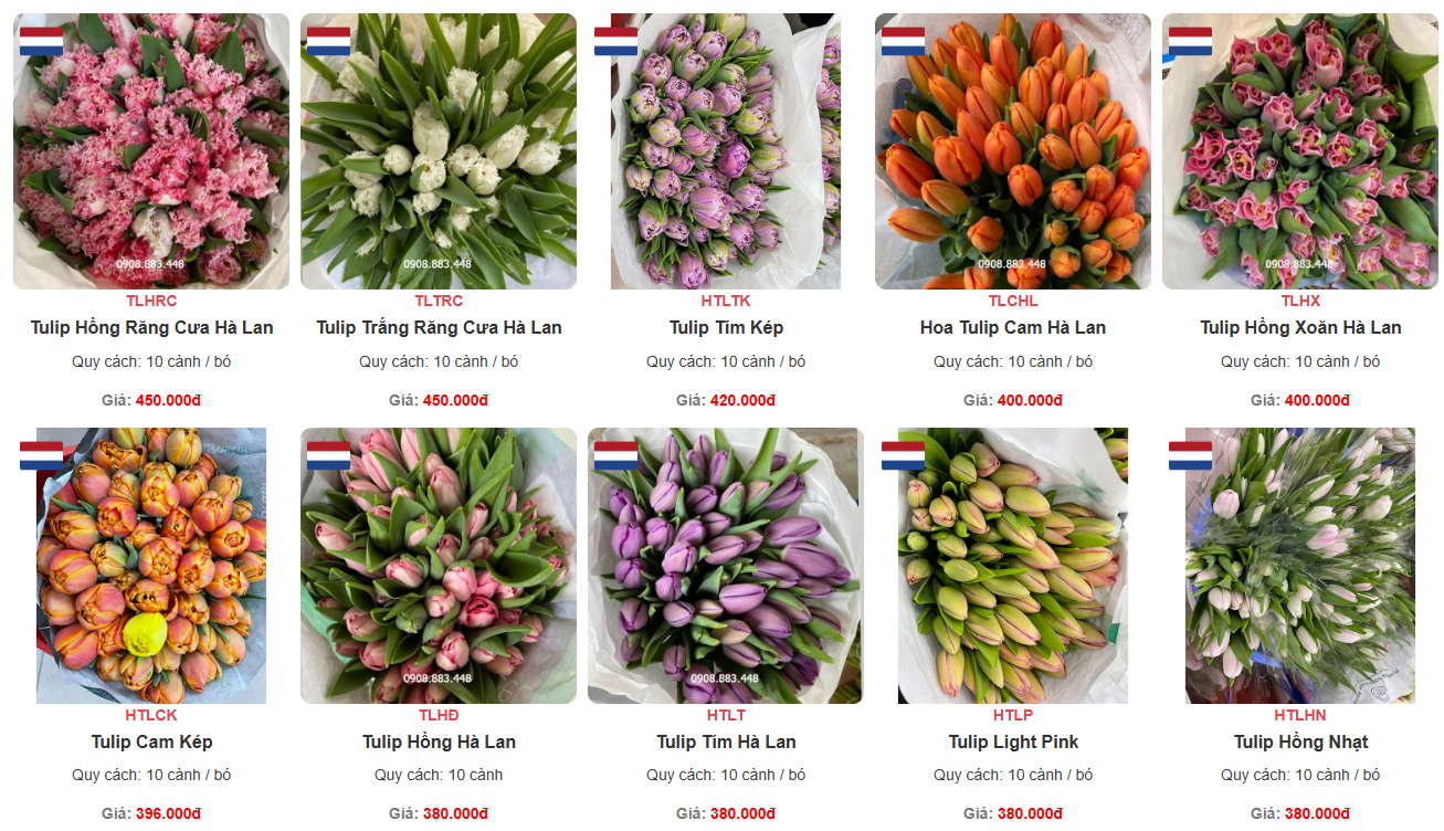 Theo khảo sát tại một số cửa hàng hoa ở Hà Nội và TP.HCM, tulip Hà Lan hiện được bán với giá khoảng 700.000 đến 900.000 đồng cho một bó 10 cành. Trong khi đó, vào thời điểm bình thường, giá loại hoa này chỉ khoảng 350.000 đến 500.000 đồng mỗi bó. Như vậy, giá tulip trong dịp cận lễ đã tăng gần gấp đôi so với ngày thường.