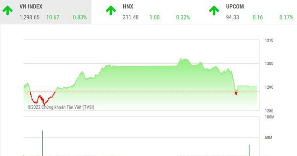 Đóng cửa, sàn HOSE có 141 mã tăng và 315 mã giảm, VN-Index tăng nhẹ 2,03 điểm (+0,16%) lên 1.290,01 điểm. Tổng khối lượng giao dịch đạt hơn 589,88 triệu đơn vị, giá trị 16.942 tỷ đồng, tăng 24,5% về khối lượng và 31,2% về giá trị so với phiên cuối tuần trước ngày 3/6. Giao dịch thỏa thuận đóng góp hơn 48,32 triệu đơn vị, giá trị hơn 1.643 tỷ đồng.