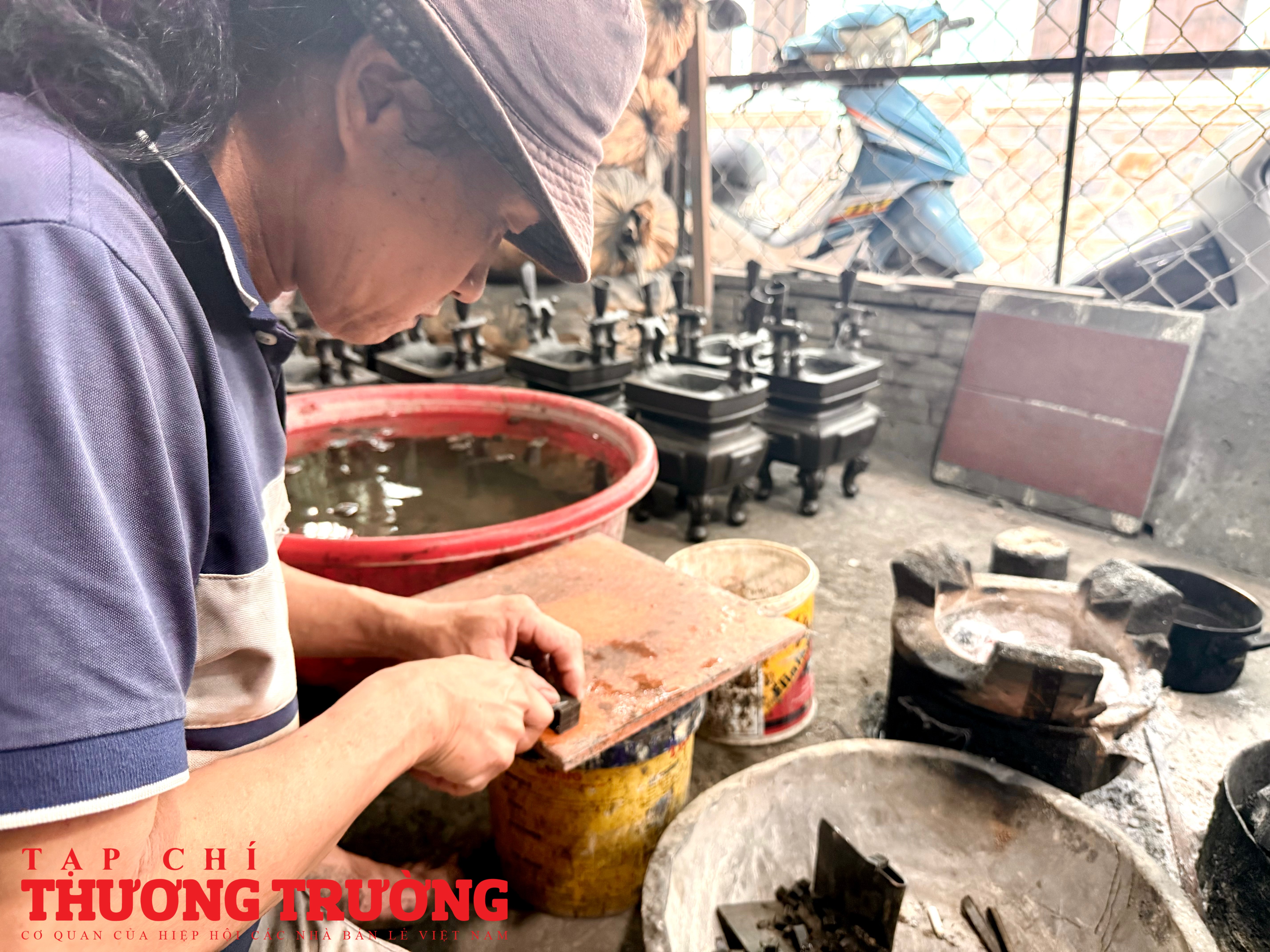 Chính vì vậy, nghề làm lư đồng không đơn thuần là lao động thủ công mà đòi hỏi người thợ phải có tay nghề cao, sự kiên nhẫn và hiểu biết sâu sắc về hình khối, hoa văn cũng như “thần thái” của sản phẩm. Tại cơ sở Sáu Bảnh, những giá trị ấy vẫn được gìn giữ gần như nguyên vẹn.