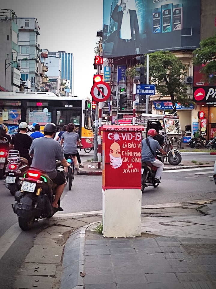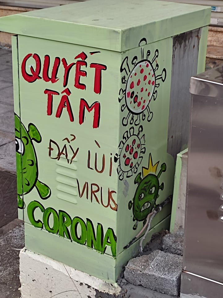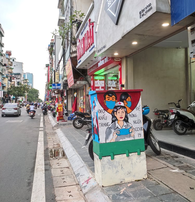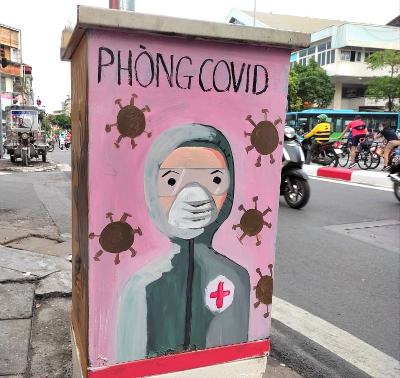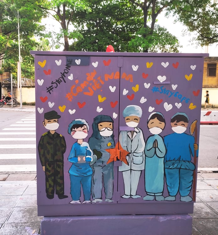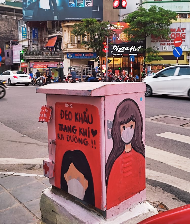 Nhằm tuyên truyền và nâng cao tinh thần phòng chống dịch của người dân thủ đô, Hội Cựu chiến binh kết hợp với Đoàn Thanh niên Bách Khoa đã vẽ các bức tranh cổ động về đội ngũ y, bác sĩ; công tác phòng chống dịch trên nhiều bốt điện tại ngã tư Bạch Mai - Lê Thanh Nghị (quận Hai Bà Trưng, Hà Nội).