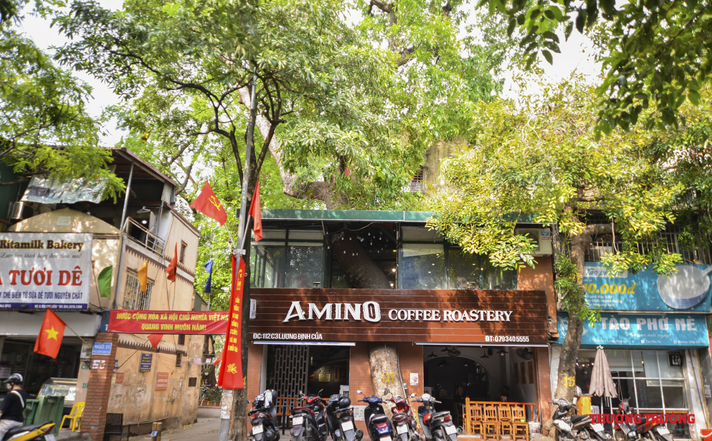 Cây xà cừ “xuyên thủng” một quán cà phê khu C3 Kim Liên. Khách hàng tới quán khá thích thú với kiến trúc lạ của quán, vừa ngồi trong không gian xanh mát, vừa thưởng thức cà phê, vừa được ngắm nhìn thân cây to sừng sững.