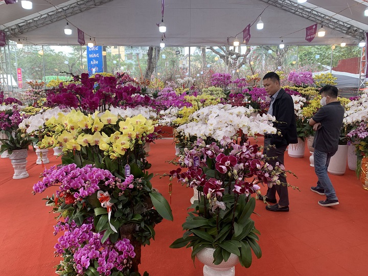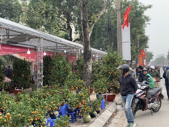 Ghi nhận của phóng viên tại dọc nhiều tuyến phố của Hà Nội như Giảng Võ, Tân Mai, Lạc Long Quân…đã tràn sắc hoa và cây cảnh như đào, quất, mai, lan…