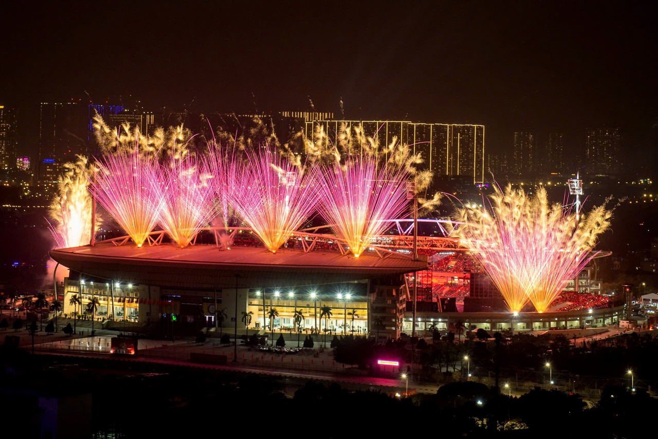 Cuối chương trình, bầu trời Mỹ Đình rực sáng với màn pháo hoa tổng lực, đa sắc màu, được lập trình chính xác đến từng phần nghìn giây, tạo nên khoảnh khắc thị giác mãn nhãn và đầy xúc cảm.