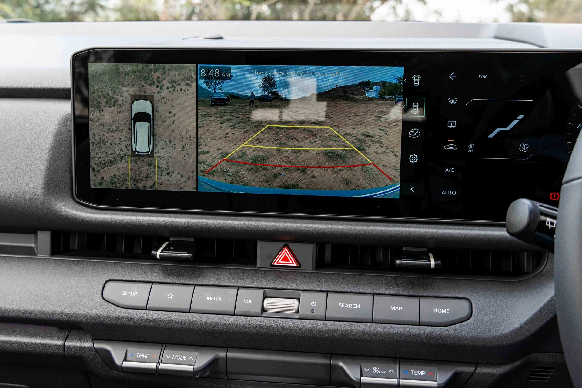 Hãng xe Hàn Quốc vẫn giữ lại các phím bấm vật lý cho hệ thống âm thanh nhằm đảm bảo tính tiện dụng khi thao tác. Trên các phiên bản cao cấp, danh sách trang bị khá ấn tượng với hệ thống âm thanh 8 loa Bose, điều hòa tự động hai vùng, sạc không dây có tản nhiệt, đèn viền nội thất 64 màu và phanh tay điện tử. Hàng ghế sau cũng được chăm chút khi có thể ngả tới 24 độ, đi kèm cửa gió riêng, rèm che nắng và cổng sạc USB-C.