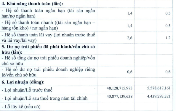 Đáng lo ngại hơn nằm ở khả năng thanh toán ngắn hạn. Các hệ số thanh toán đều giảm mạnh, khi hệ số thanh toán hiện hành và thanh toán nhanh cùng từ mức 1,4 lần xuống chỉ còn 0,5 lần. Điều này cho thấy tài sản ngắn hạn không còn đủ để đảm bảo các nghĩa vụ nợ ngắn hạn, phản ánh rủi ro thanh khoản gia tăng rõ rệt. Bên cạnh đó, hệ số khả năng trả lãi vay cũng giảm từ 2,6 lần xuống 1,2 lần, cho thấy biên an toàn tài chính đang bị thu hẹp đáng kể.