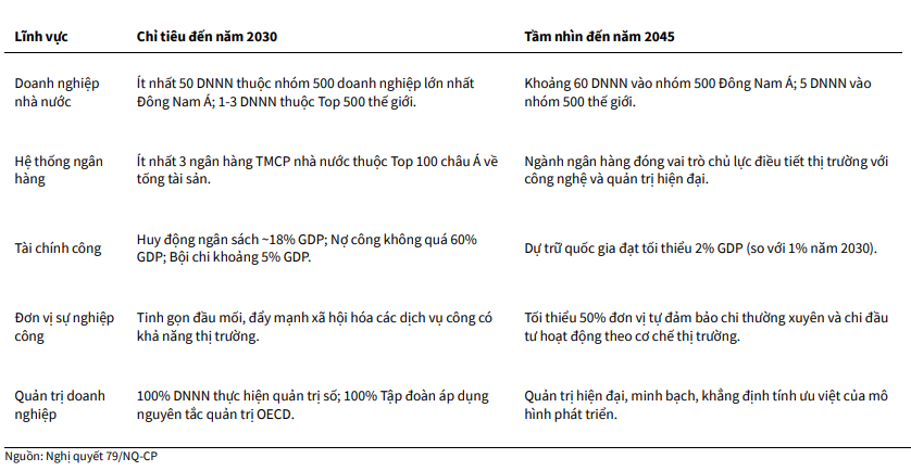 Trước hết, nghị quyết hướng tới tái cấu trúc quy mô và nâng cao năng lực cạnh tranh của doanh nghiệp nhà nước. Theo đó, Nhà nước chủ trương tăng vốn điều lệ cho các tập đoàn, tổng công ty và ngân hàng thương mại nhà nước quy mô lớn nhằm củng cố tiềm lực tài chính. Đồng thời, cơ chế tài chính mới cho phép doanh nghiệp được giữ lại toàn bộ nguồn thu từ cổ phần hóa và thoái vốn để tăng vốn, tái đầu tư, thay vì nộp về ngân sách như trước. Việc khuyến khích hợp nhất, sáp nhập (M&A) cũng được đẩy mạnh nhằm hình thành các “sếu đầu đàn” đủ sức cạnh tranh trên thị trường khu vực và toàn cầu.