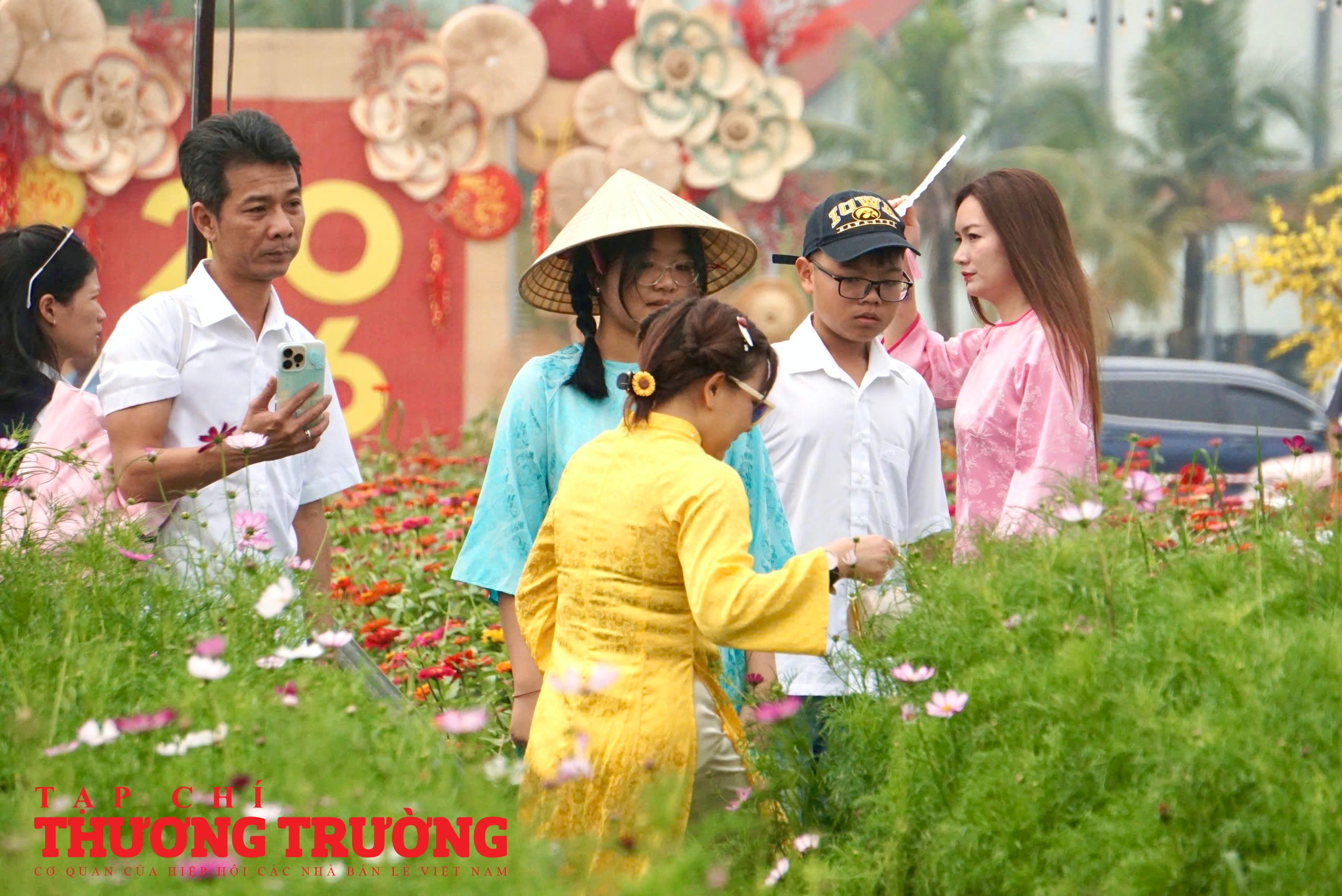Theo ghi nhận, áo dài truyền thống là trang phục được nhiều người lựa chọn nhất khi đến chụp ảnh. Các nhóm bạn trẻ, gia đình có con nhỏ hay các cặp đôi đều tranh thủ tạo dáng, ghi lại những khoảnh khắc rực rỡ giữa không gian hoa xuân.