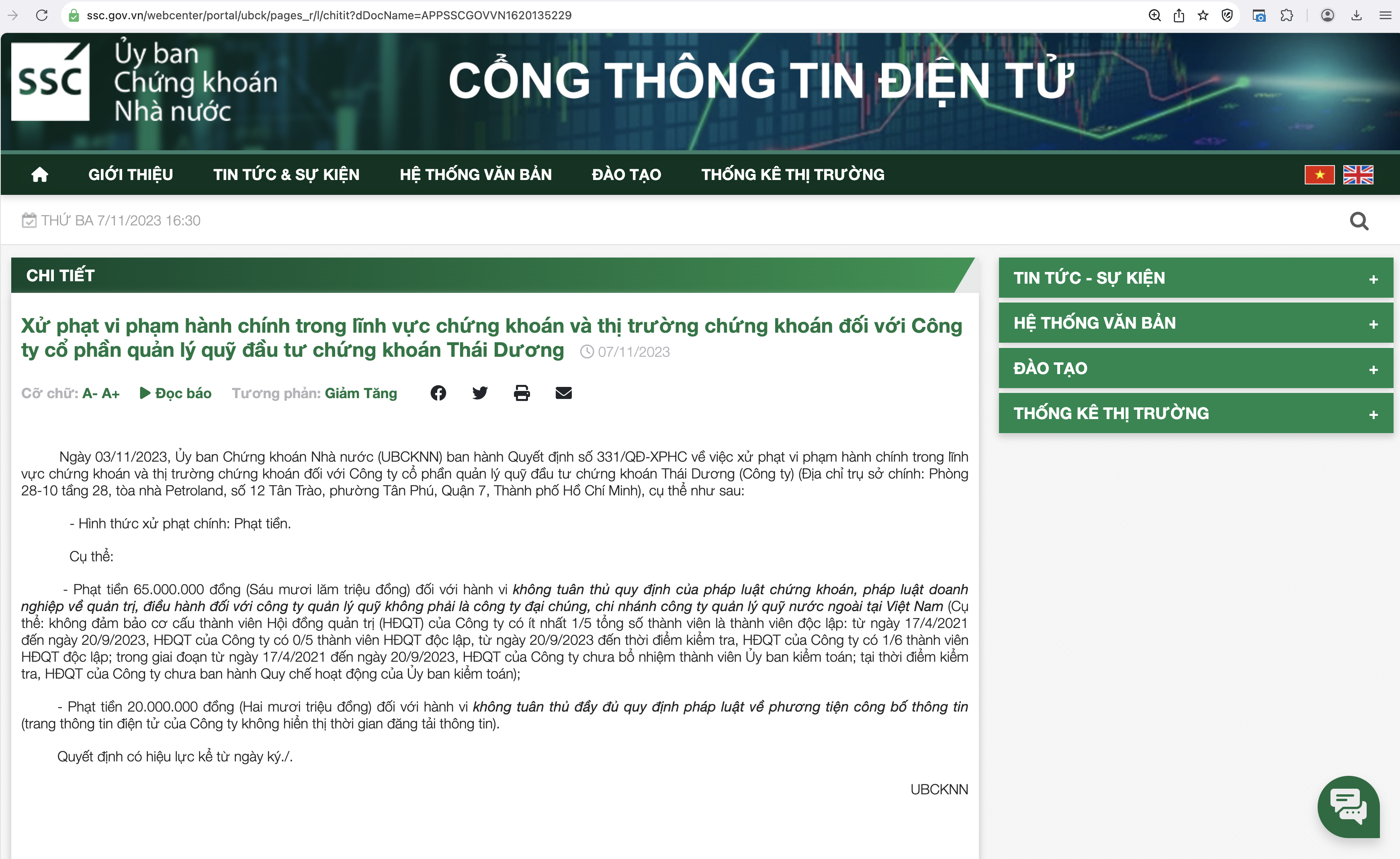 Ngoài ra, doanh nghiệp này bị phạt 20 triệu đồng đối với hành vi không tuân thủ đầy đủ quy định pháp luật về phương tiện công bố thông tin (trang thông tin điện tử của Công ty không hiển thị thời gian đăng tải thông tin).