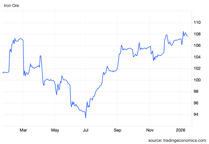 Ngay từ những tuần đầu năm 2026, thị trường quặng sắt toàn cầu đã ghi nhận đà tăng mạnh. Hợp đồng tương lai quặng sắt tại Singapore đã vượt mốc 109 USD/tấn trong tuần này – mức giá cao nhất trong khoảng 15 tháng.