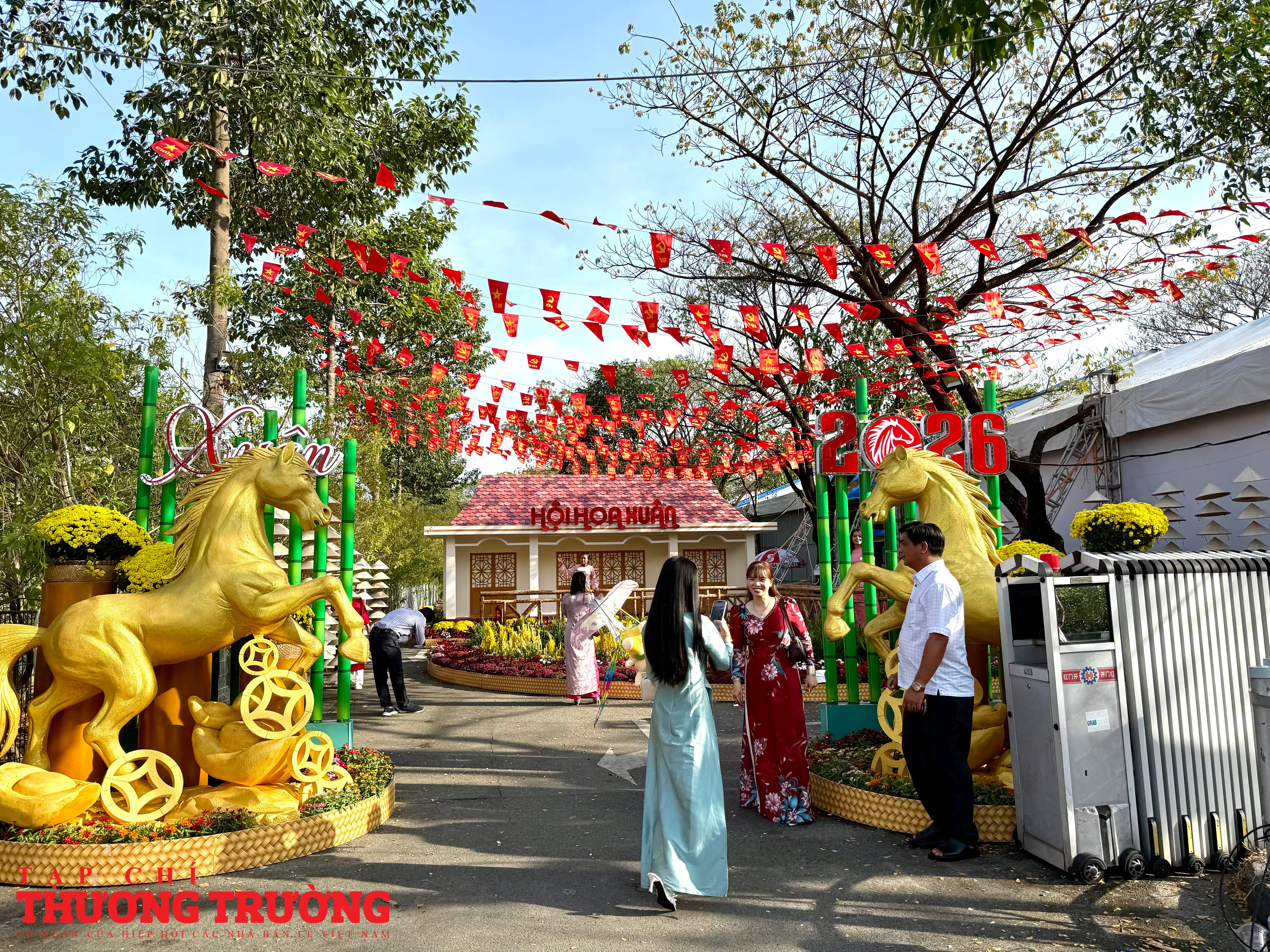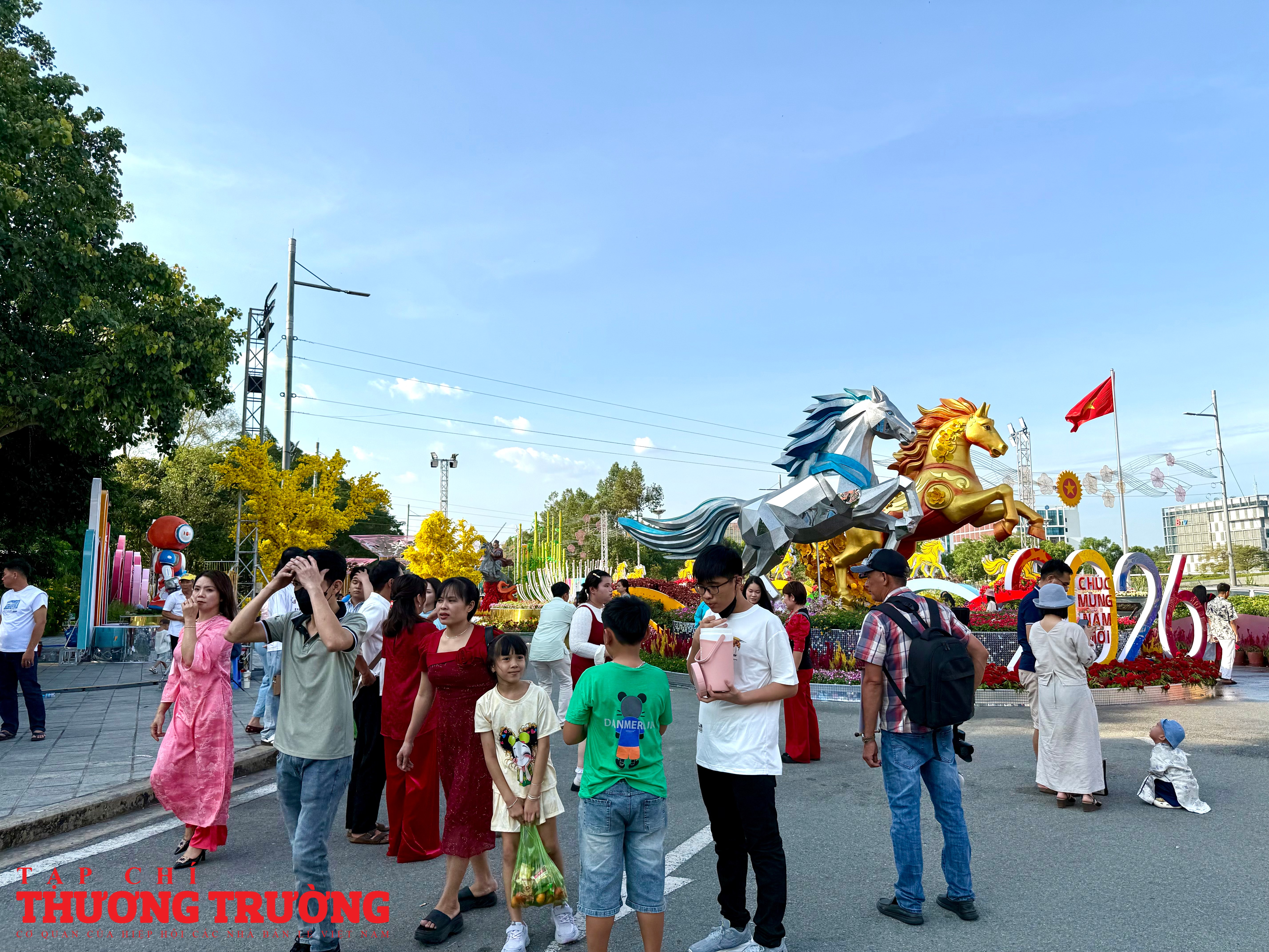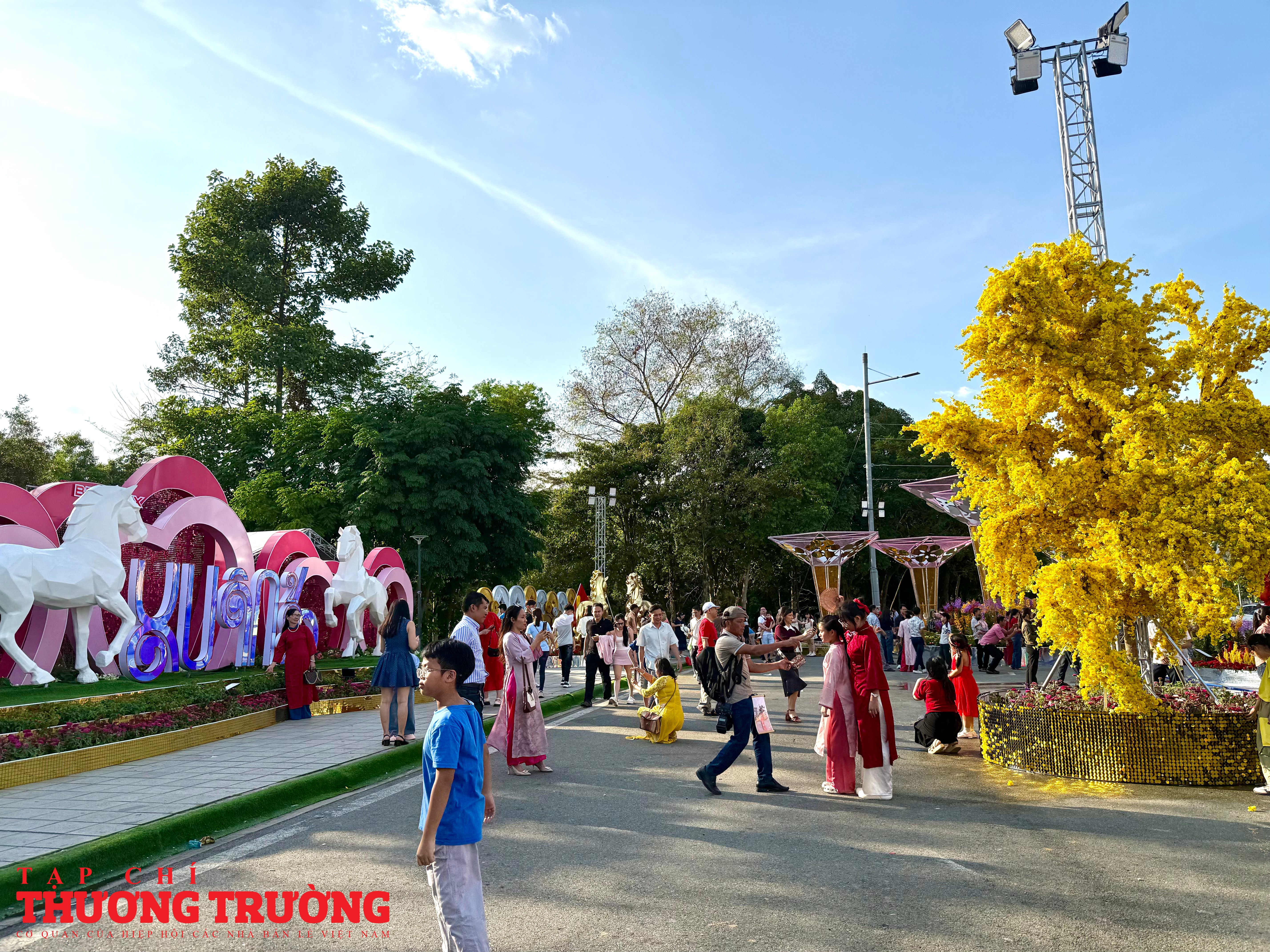 Ngay từ ban ngày, khu vực lễ hội đã thu hút đông đảo người dân, gia đình, bạn trẻ và du khách đến tham quan, chụp ảnh lưu niệm. Nhiều người diện áo dài truyền thống, tạo nên bức tranh xuân hài hòa giữa không gian văn hóa hiện đại và bản sắc dân tộc. Các tuyến đường nội khu được bố trí thông thoáng, thuận tiện cho việc tham quan và trải nghiệm.