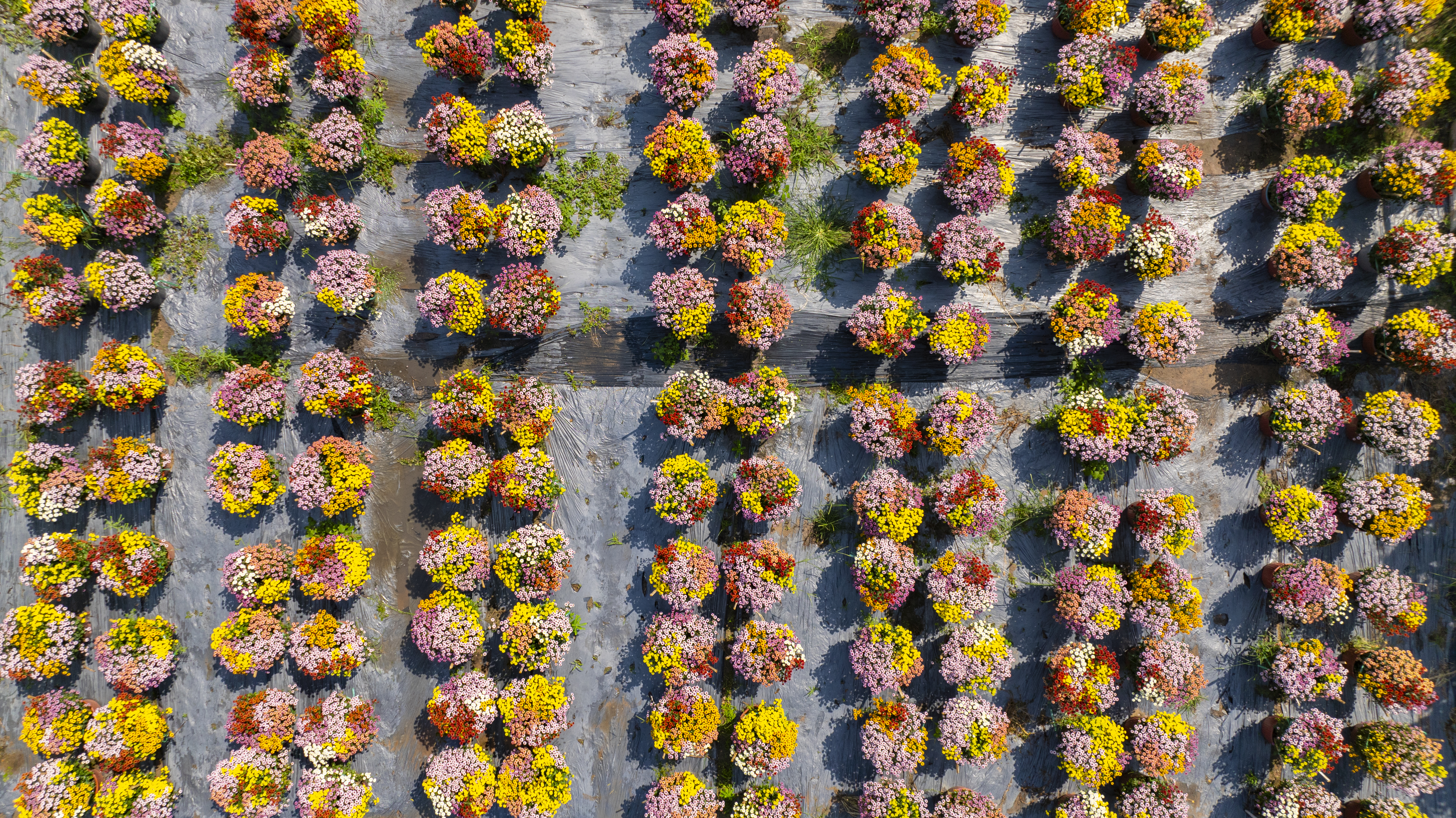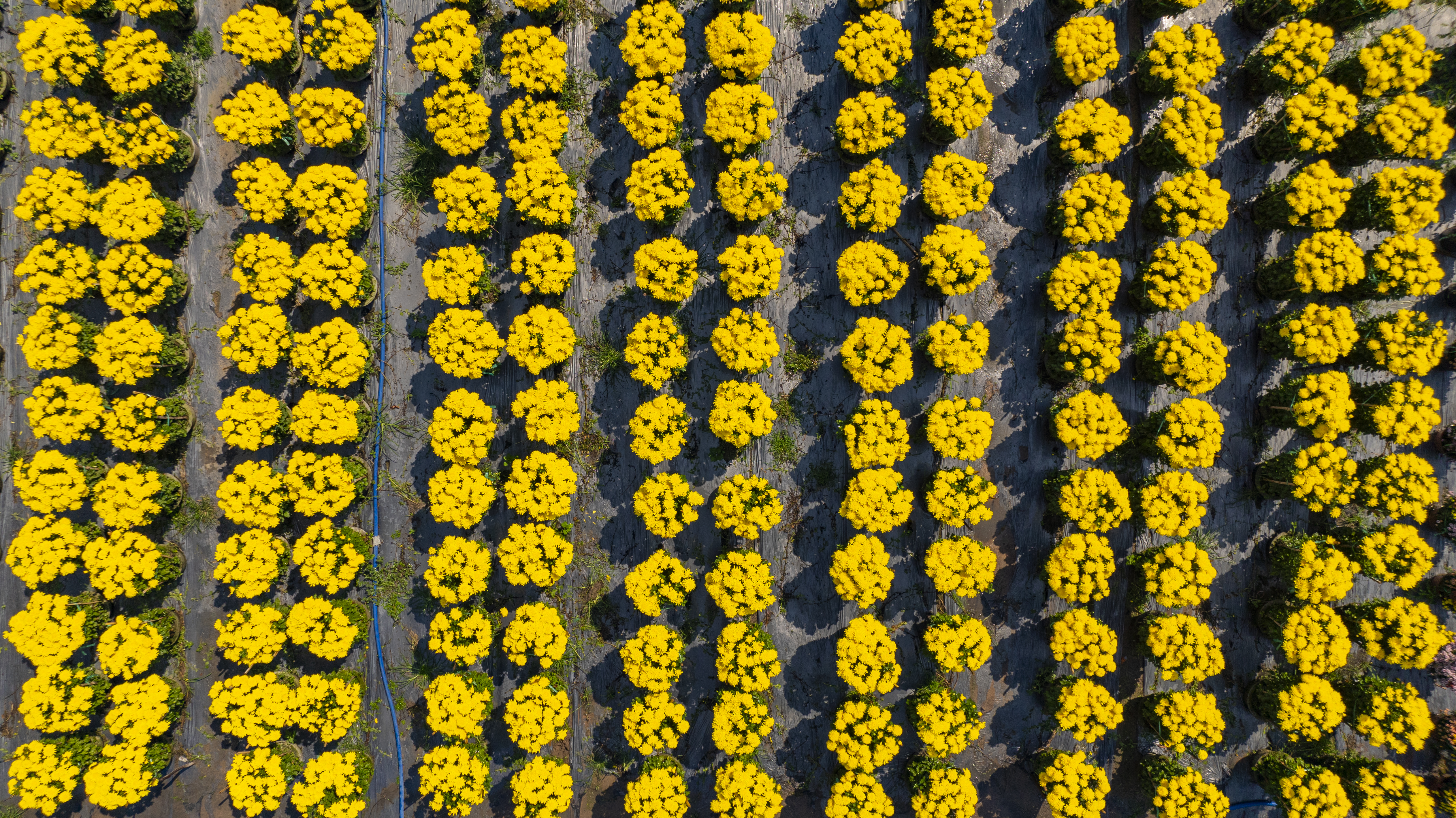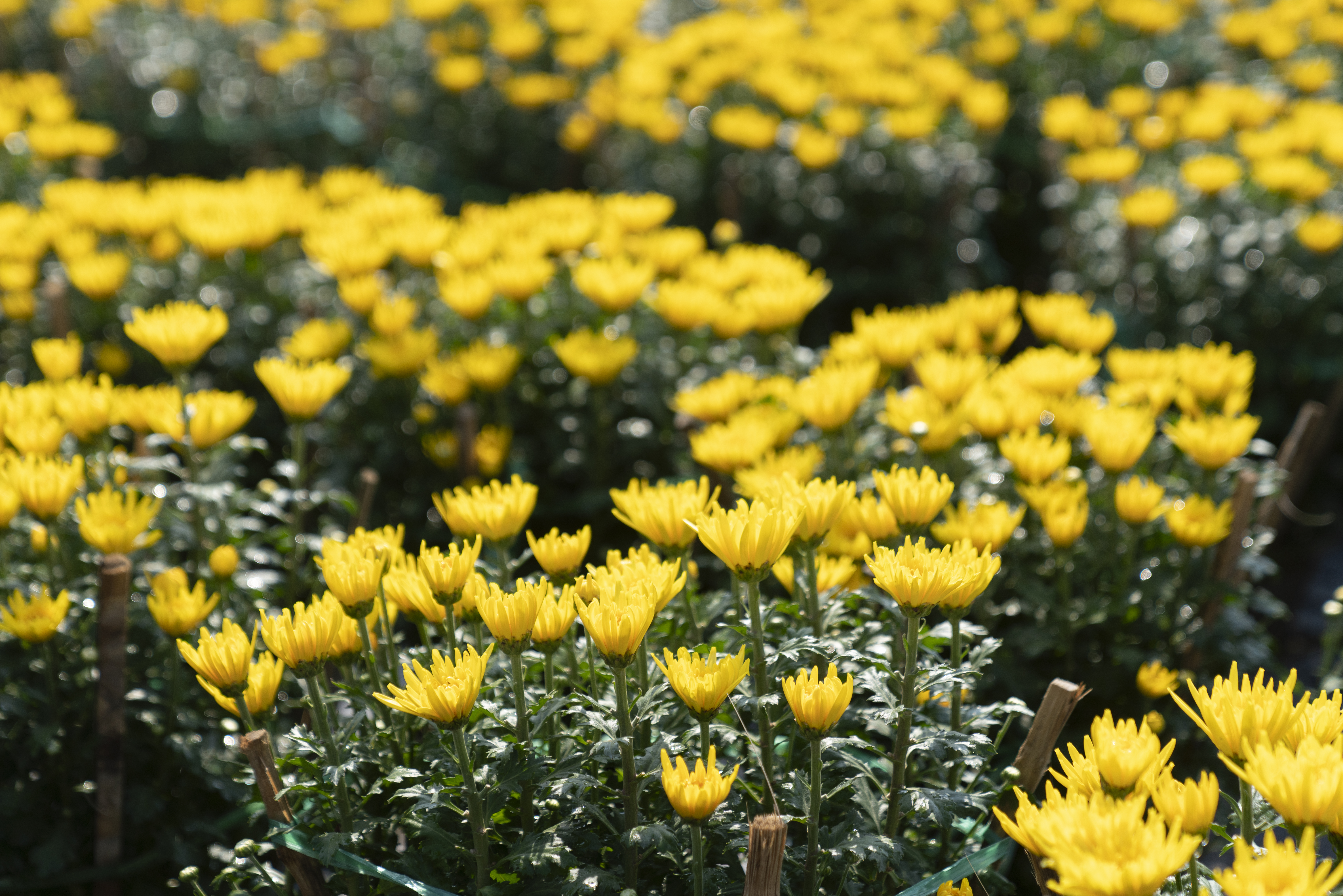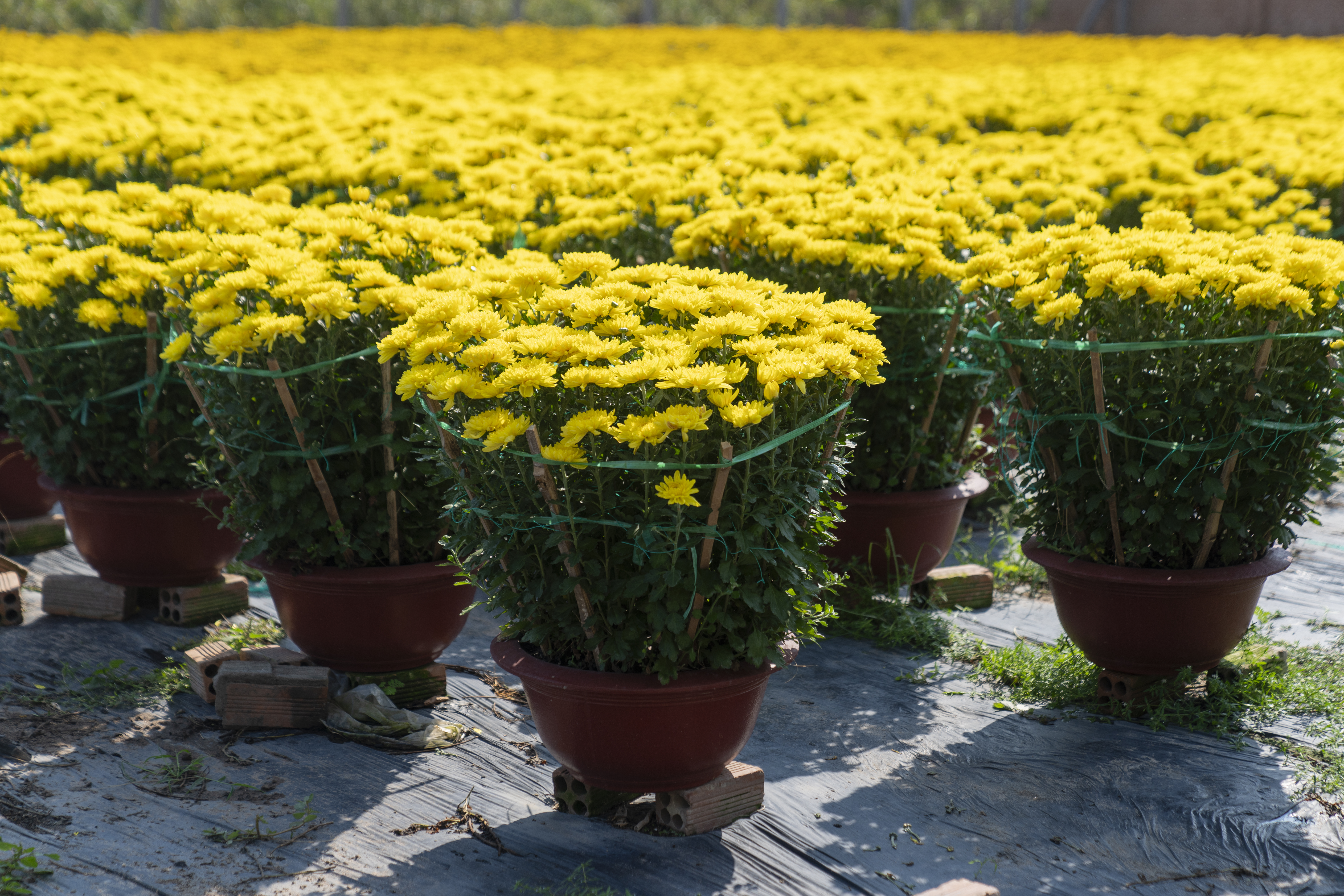 Ghi nhận tại nhiều vườn hoa trong khu vực, hoa được trồng theo từng khu, từng luống ngay ngắn, đa phần là hoa chậu lớn phục vụ khách mua trang trí nhà cửa, cơ quan, khu du lịch và các tuyến đường trong dịp Tết. Các giống cúc mâm xôi, cúc đại đóa vàng tươi vẫn là lựa chọn được ưa chuộng nhờ dáng tròn, hoa nở đều, mang ý nghĩa sung túc, đủ đầy.