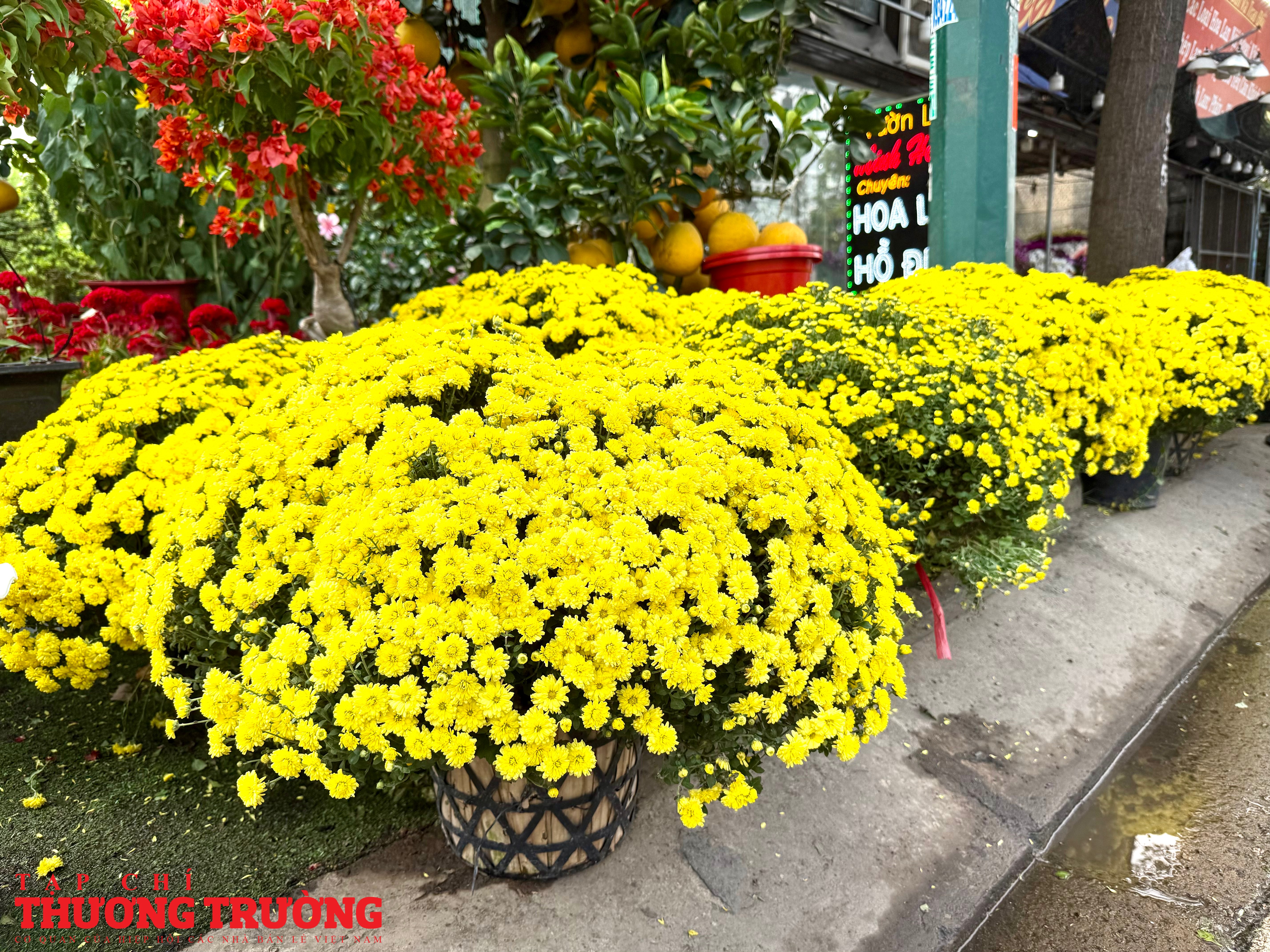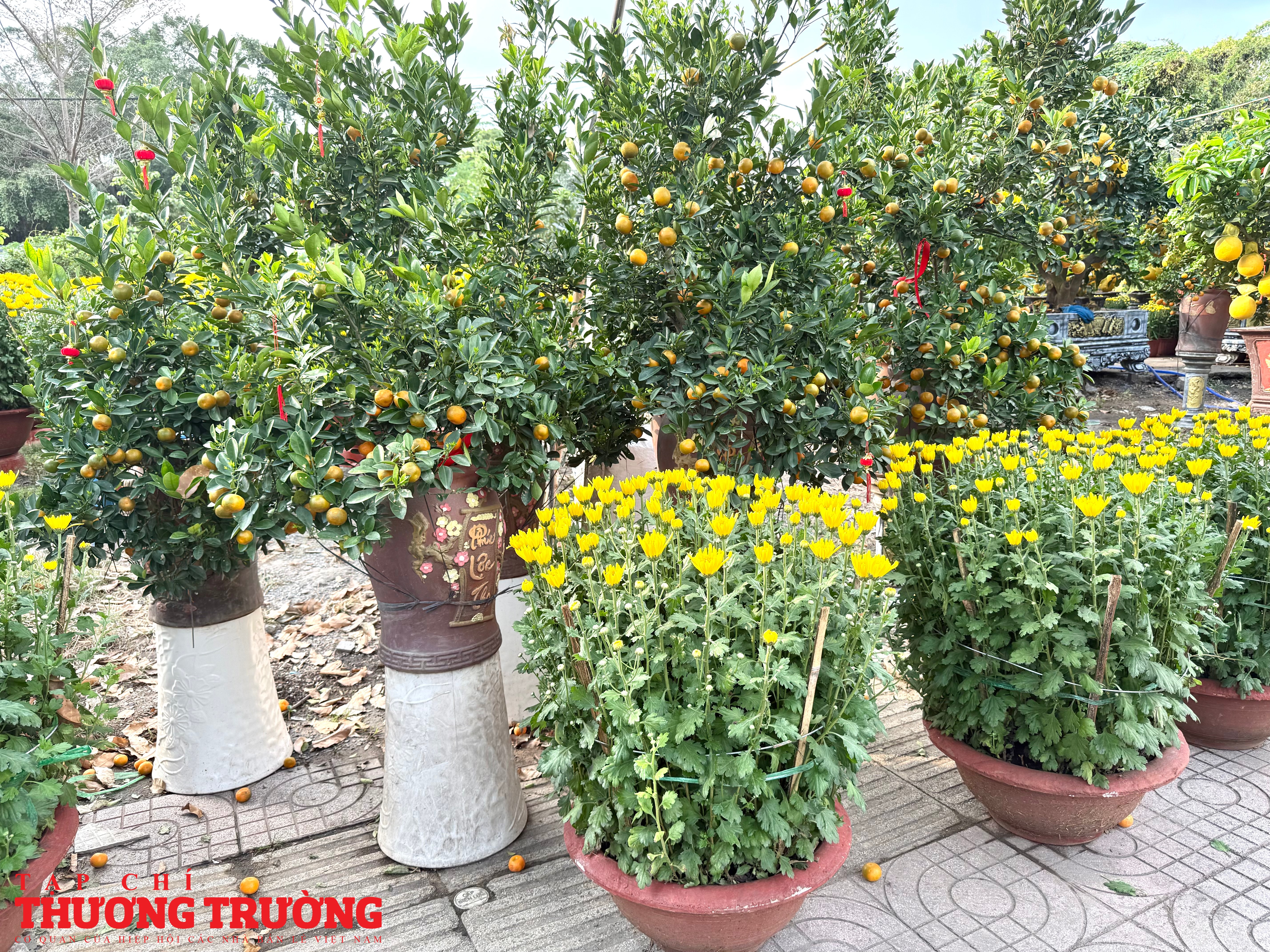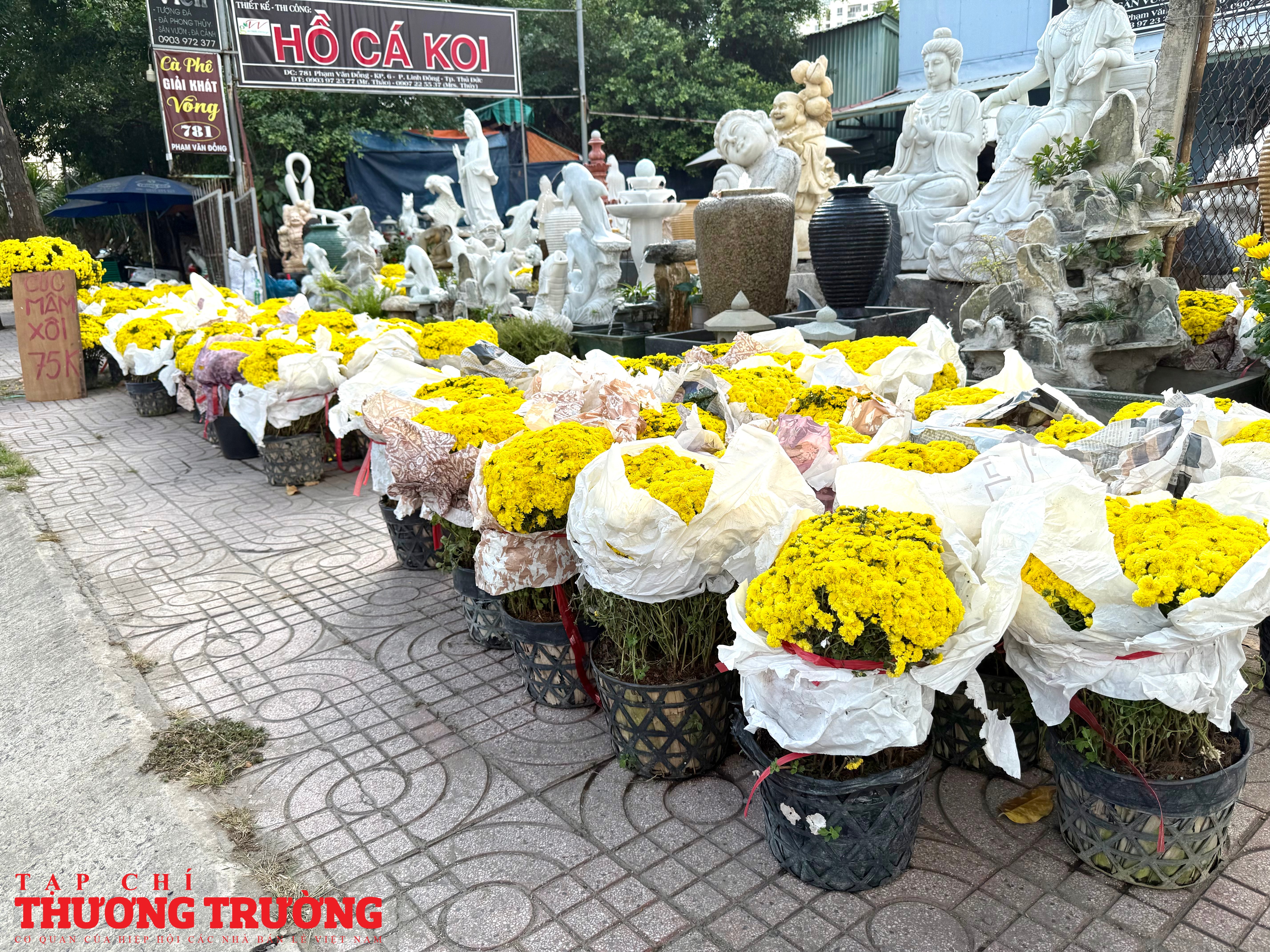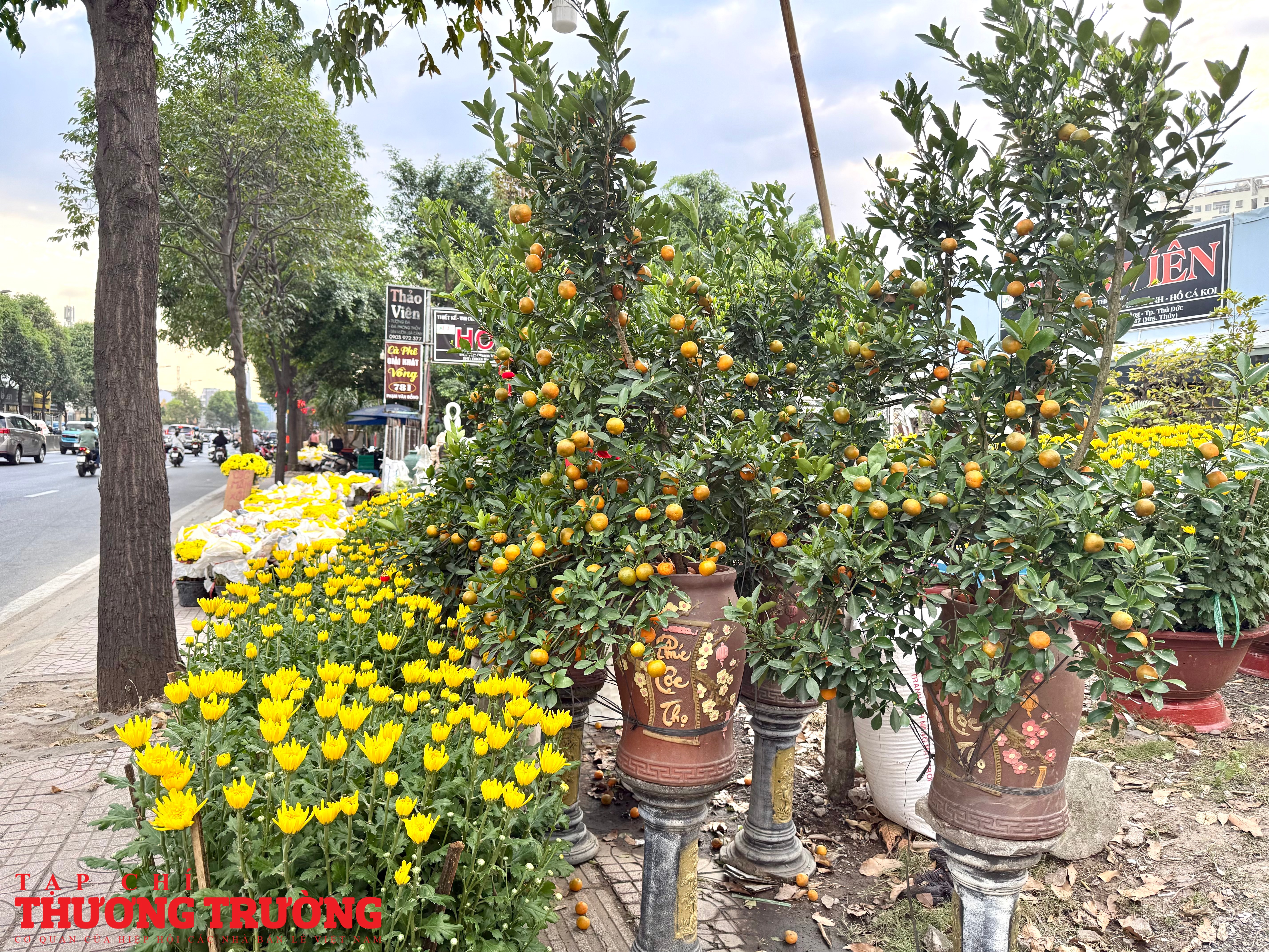 Theo ghi nhận của PV Thương Trường, mặt hàng chủ lực trên tuyến đường này vẫn là mai vàng, cúc mâm xôi, cúc đại đóa, quất kiểng, vạn thọ, mào gà, trạng nguyên, với nhiều kích cỡ, kiểu dáng phù hợp từ nhà phố đến chung cư.