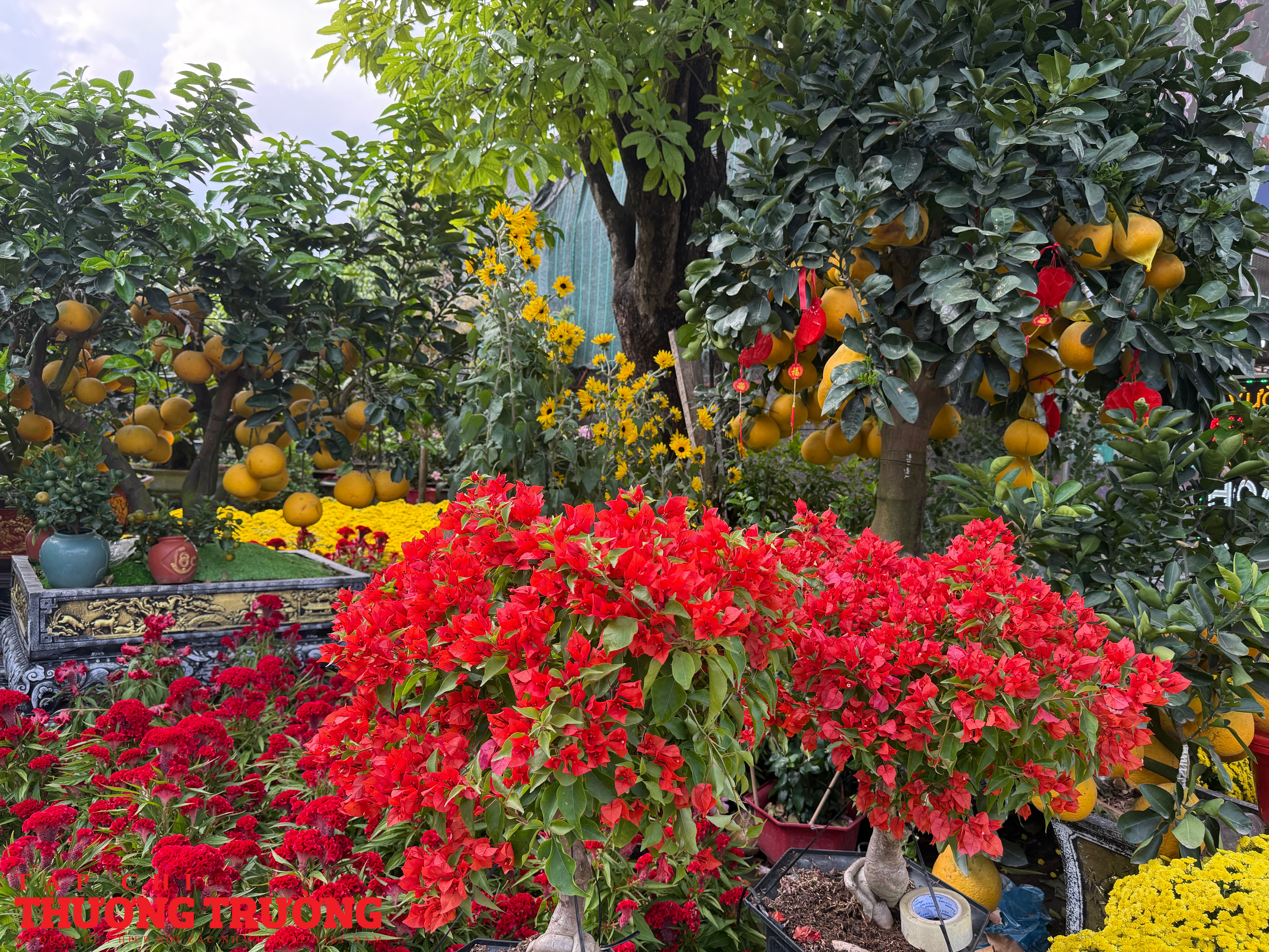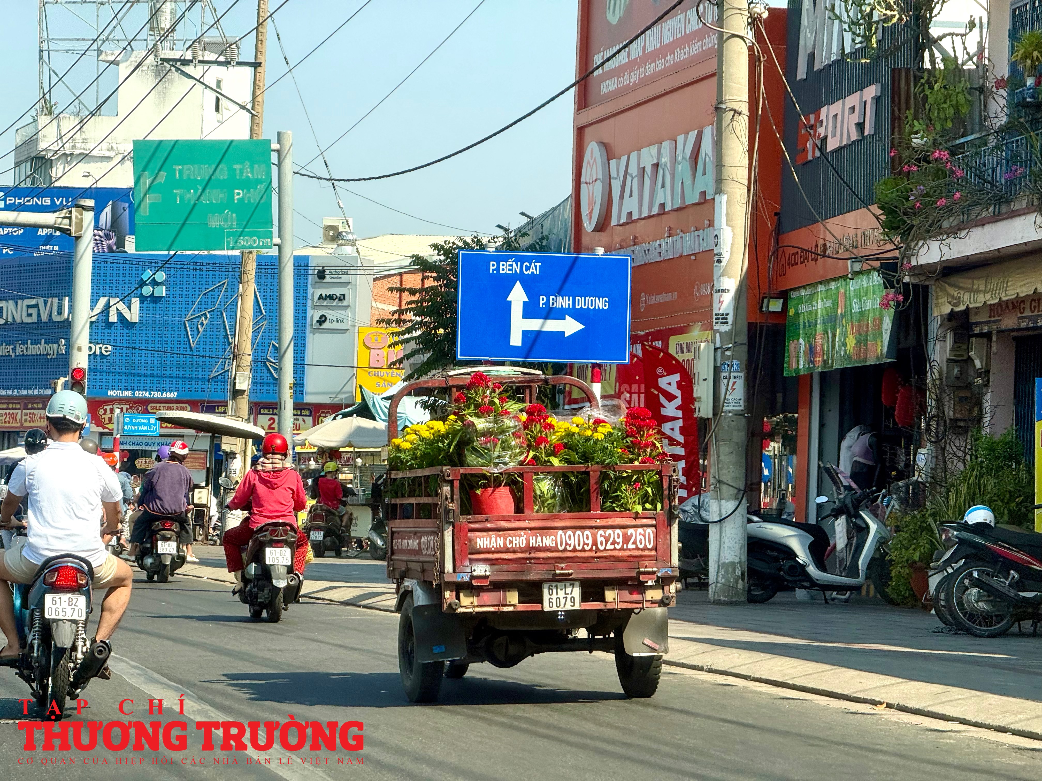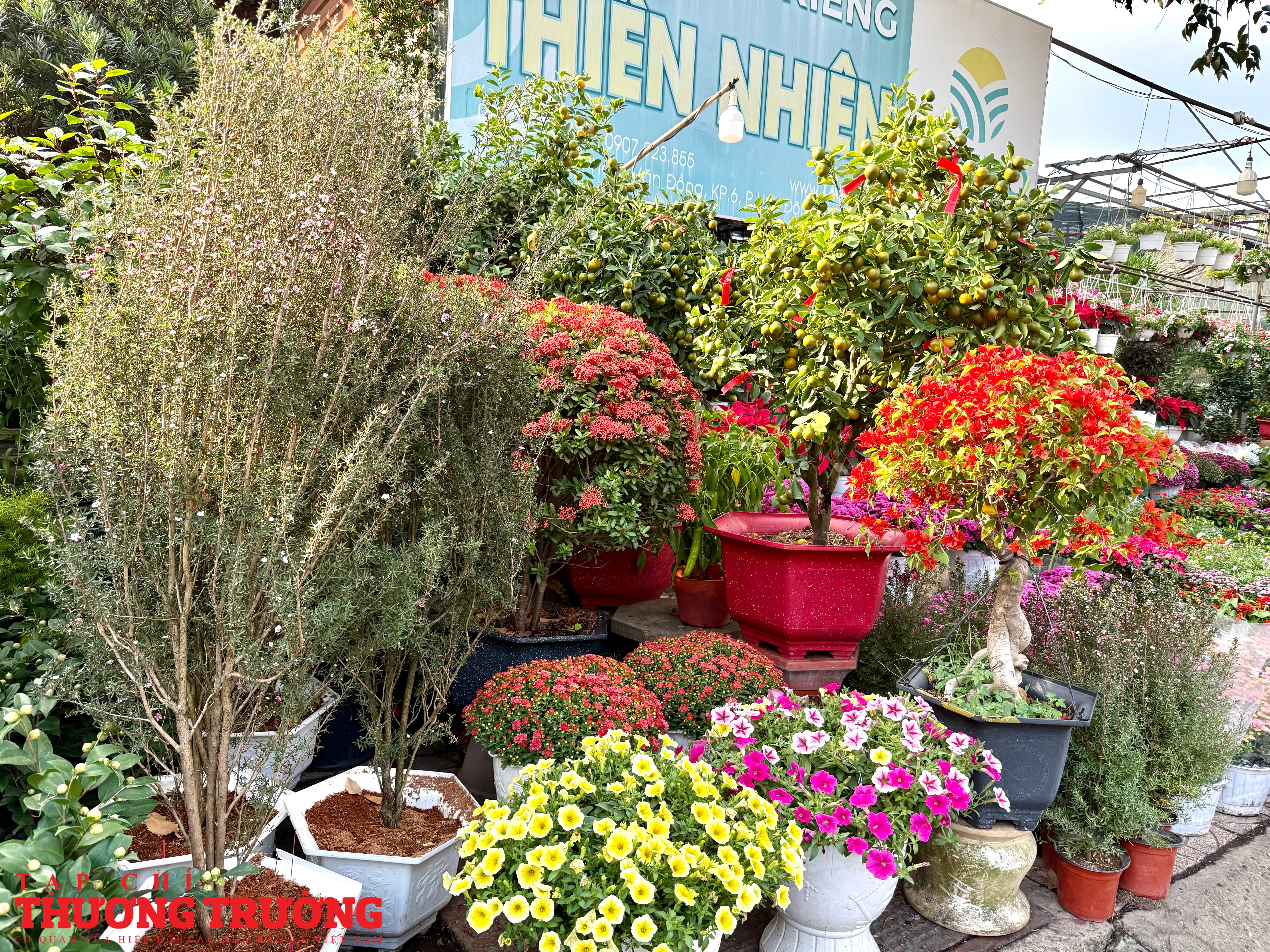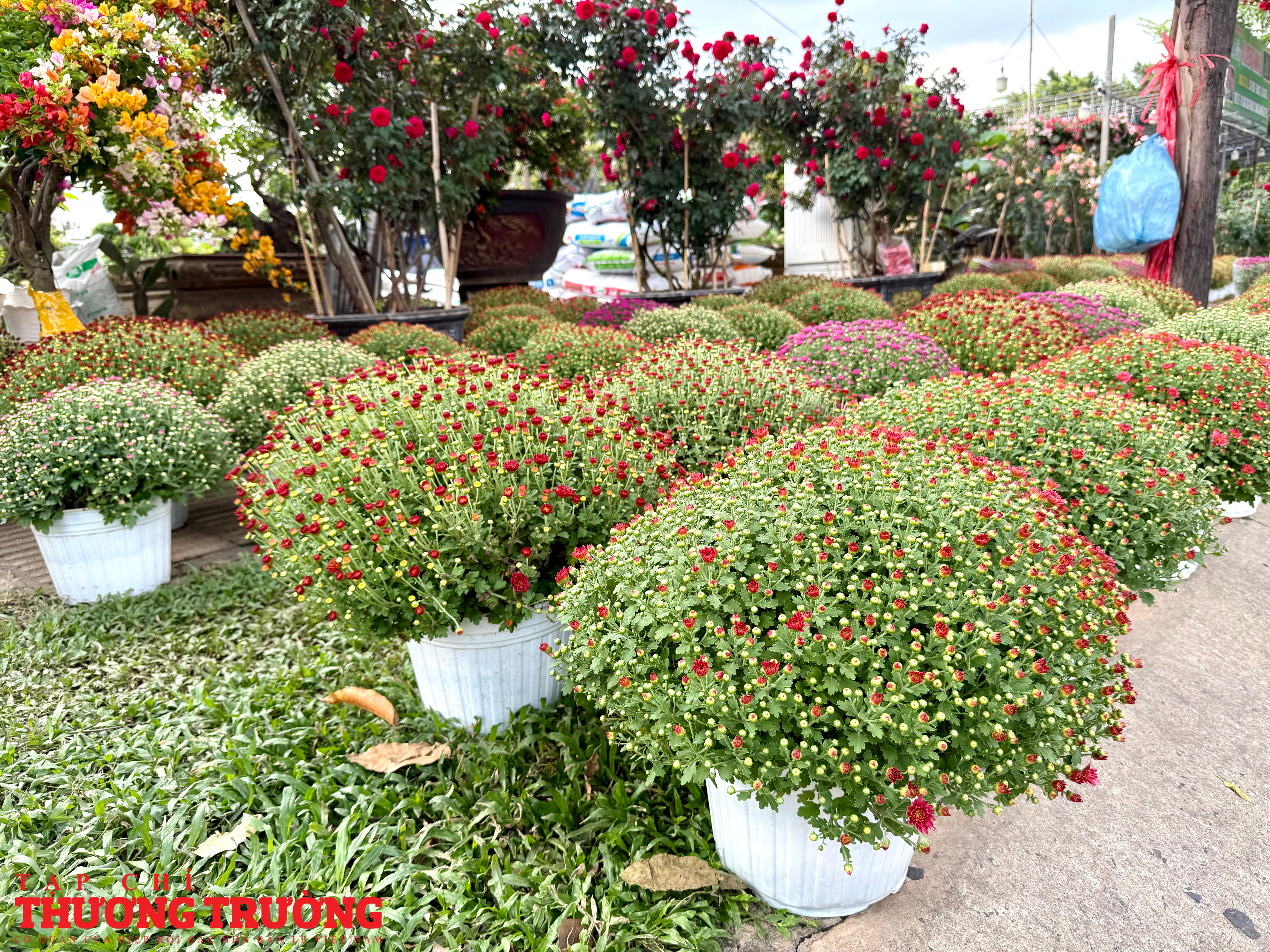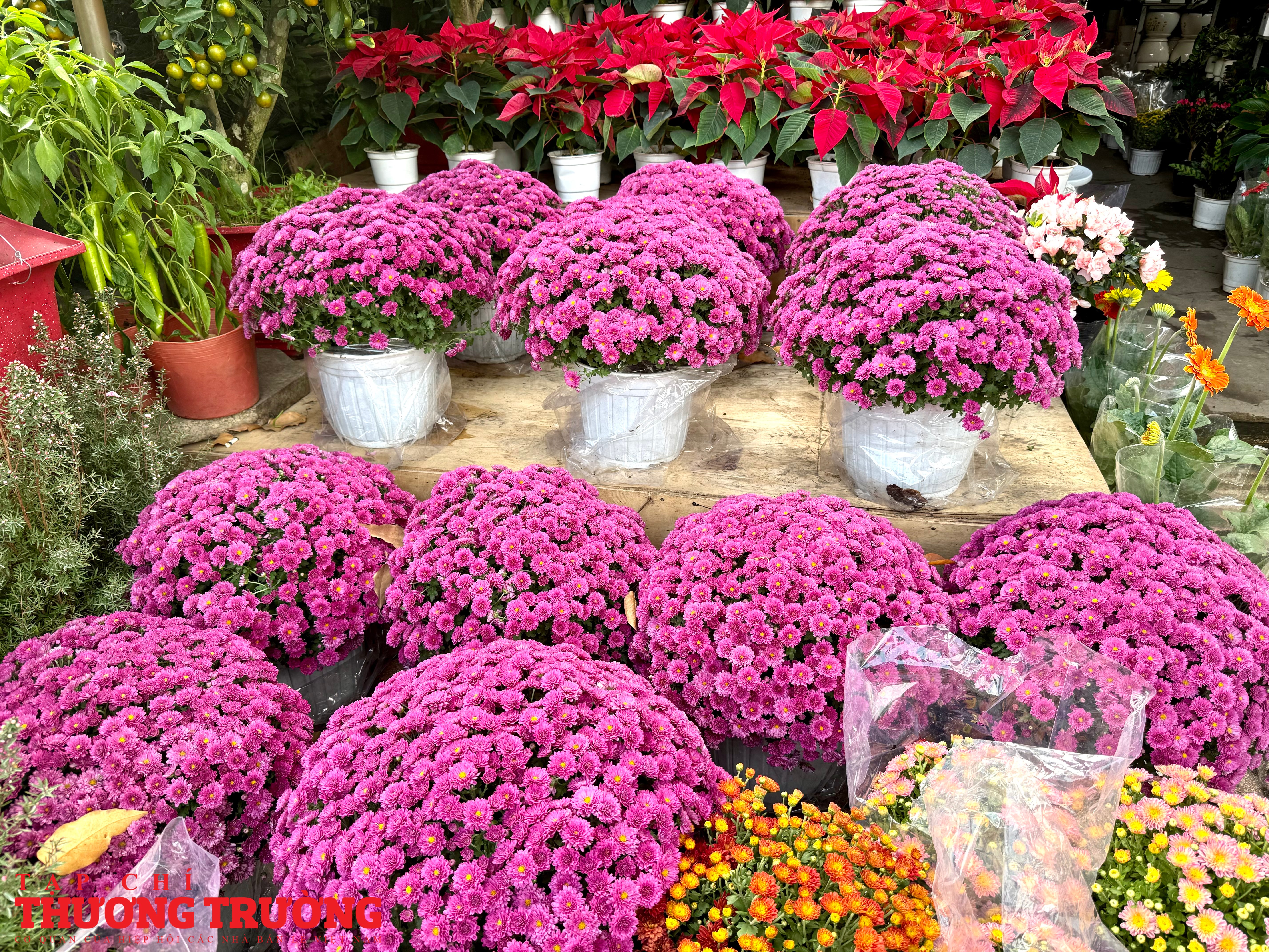 Theo ghi nhận của PV Thương Trường, mặt hàng chủ lực trên tuyến đường này vẫn là mai vàng, cúc mâm xôi, cúc đại đóa, quất kiểng, vạn thọ, mào gà, trạng nguyên, với nhiều kích cỡ, kiểu dáng phù hợp từ nhà phố đến chung cư.