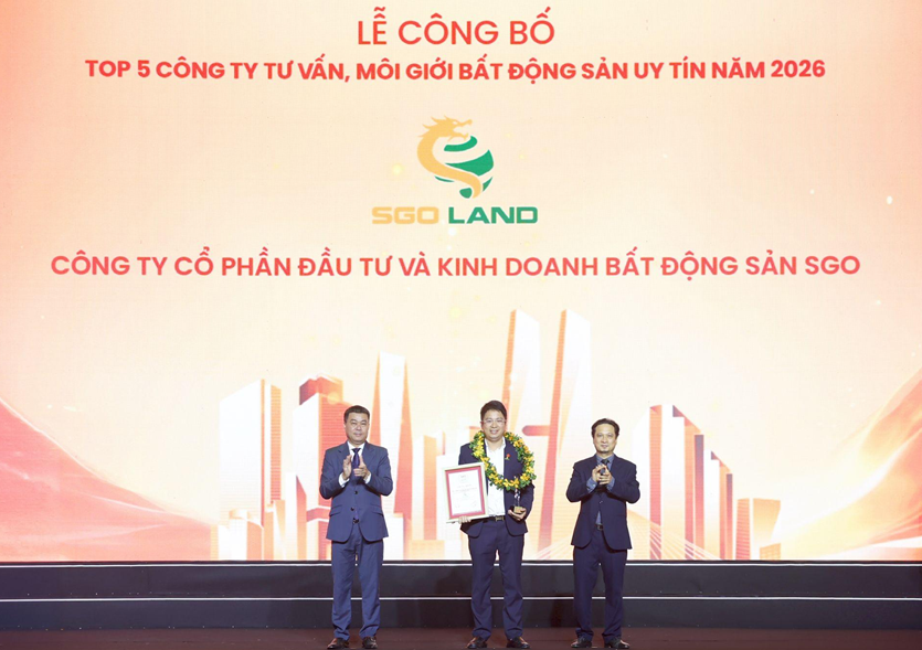 Ngày 22/4/2026, SGO Land chính thức được xướng tên trong Top 5 Công ty Tư vấn và Môi giới Bất động sản Việt Nam theo công bố của Vietnam Report. Đây được xem là một trong những bảng xếp hạng khắt khe và danh giá bậc nhất trong ngành, được hội đồng chuyên gia đánh giá dựa trên các trụ cột: năng lực tài chính, hiệu quả kinh doanh, uy tín truyền thông và kết quả khảo sát thực tế.