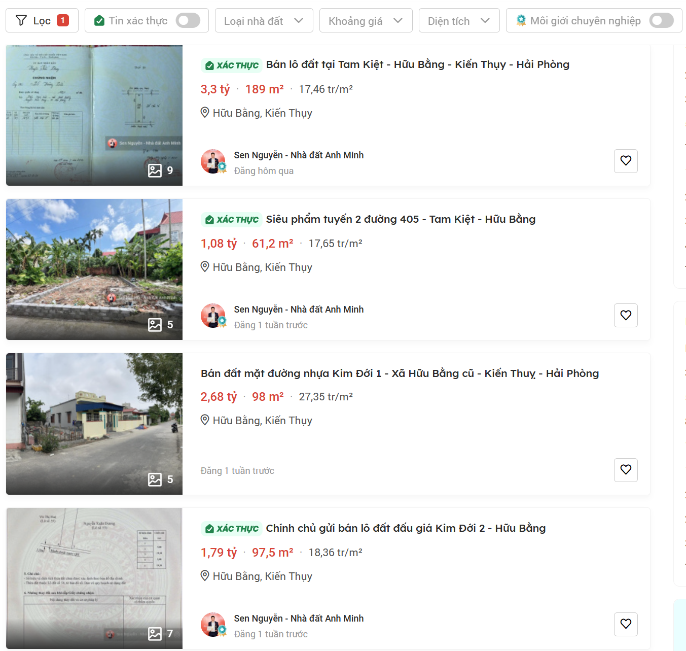 Dữ liệu giao dịch thực tế thu thập từ các sàn giao dịch bất động sản và các nguồn tin địa phương trong Quý IV/2025 và tháng 1/2026, cho thấy bức tranh giá cả thị trường tại xã Kiến Thụy được khắc họa chi tiết như sau:
