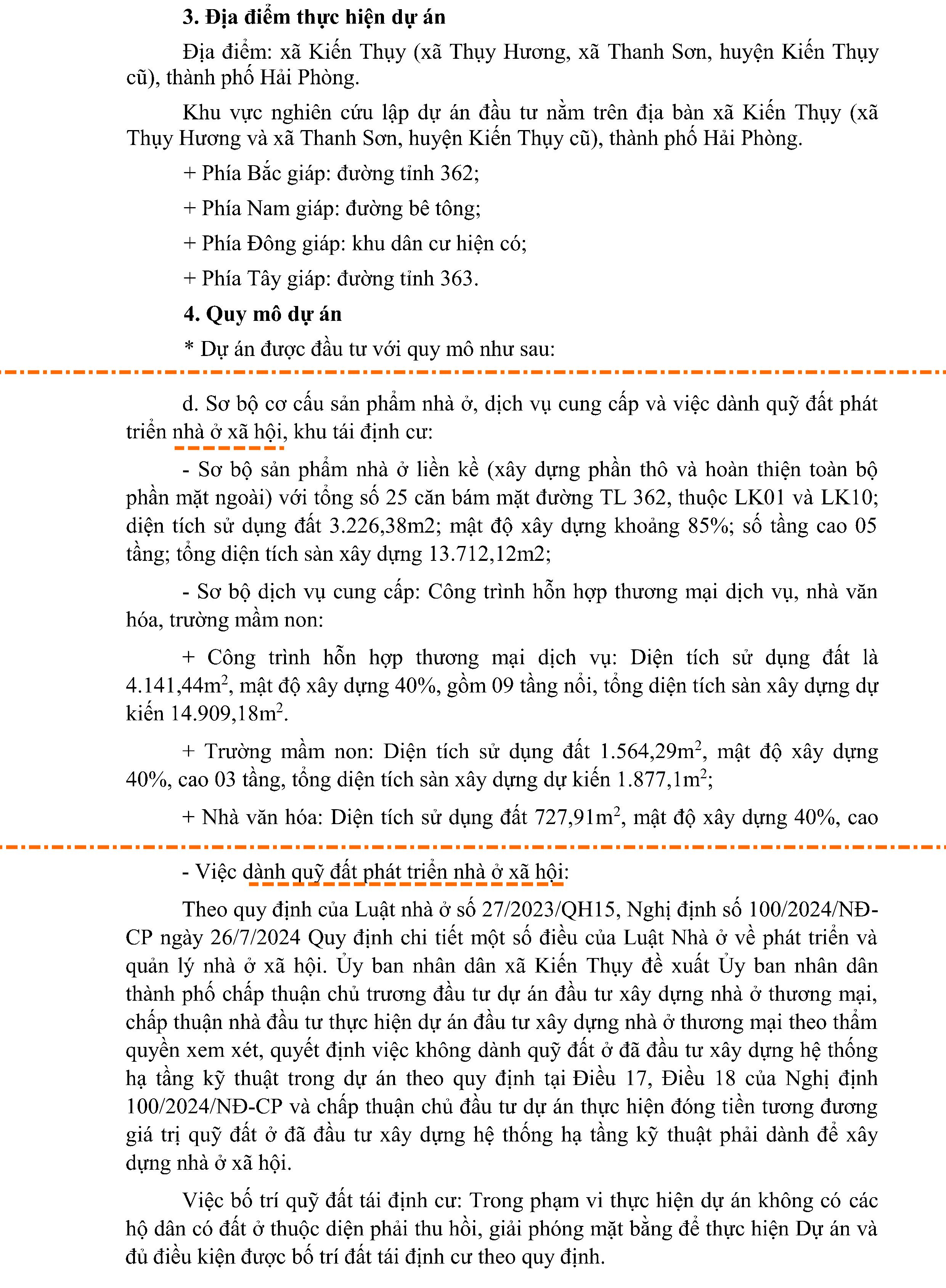 Riêng đối với nhà ở xã hội (NOXH), phân khúc đang được chính quyền đặc biệt quan tâm trong quy hoạch mới. Theo đề xuất xây dựng dự án Khu dân cư nông thôn Thụy Hương vào tháng 9/2025, đã có định hướng mục tiêu dành quỹ đất phát triển NOXH cung cấp nhà ở cho người thu nhập thấp và công nhân KCN. So sánh với các dự án NOXH khác tại Hải Phòng, NOXH tại xã Kiến Thụy được kỳ vọng sẽ có mức giá mềm hơn do chi phí đất đầu vào thấp hơn, giải quyết bài toán an cư cho lao động tại chỗ.