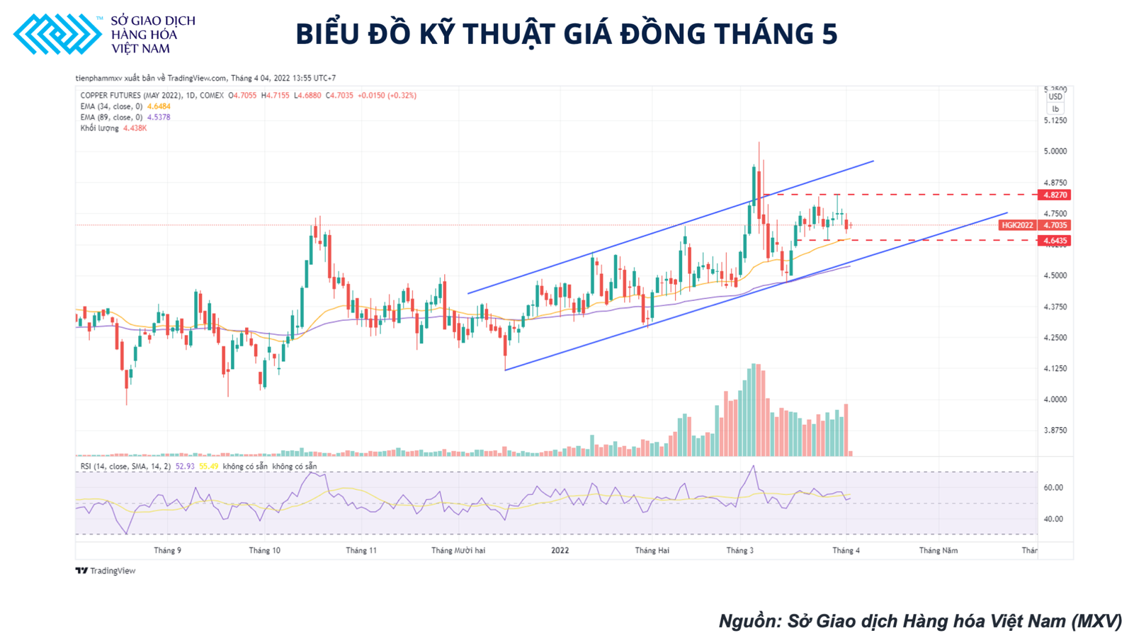 Biểu đồ kỹ thuật giá đồng tháng 5 (Nguồn: Sở giao dịch Hàng hóa Việt Nam)