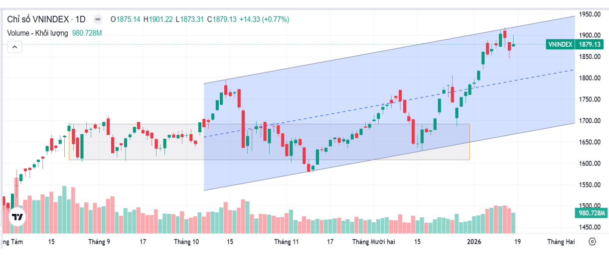 Việc Vn-Index tiến sâu vào vùng cản mạnh 1.900 điểm, cộng với biên lợi nhuận ngắn hạn đã mở rộng đáng kể sau 5 tuần tăng liên tiếp, cho thấy khả năng xuất hiện các nhịp rung lắc hoặc điều chỉnh kỹ thuật trong tuần tới. Áp lực hiện thực hóa lợi nhuận được dự báo tiếp tục gia tăng, đặc biệt tại nhóm cổ phiếu dẫn dắt như ngân hàng, dầu khí, bảo hiểm và Viettel – những nhóm đã tăng mạnh trong hai tuần đầu năm.