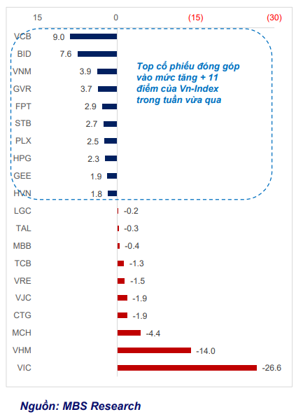 Độ rộng thị trường nghiêng hẳn về phía tích cực, với nhiều nhóm ngành ghi nhận mức tăng hai chữ số như Viettel, ô tô và phụ tùng, bảo hiểm và bất động sản khu công nghiệp. Ở chiều ngược lại, nhóm Vingroup và cao su tự nhiên điều chỉnh giảm, cho thấy thị trường đang dần “giải phóng” sự phụ thuộc vào một số cổ phiếu vốn hóa lớn.