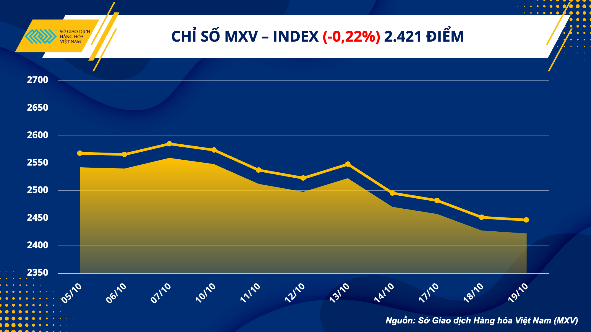Kết thúc phiên giao dịch 19/10, sắc đỏ tiếp tục bao phủ trên bảng giá các mặt hàng nhóm nguyên liệu công nghiệp. Đáng chú ý nhất là bông với phiên giảm kịch sàn gần 5%, đẩy giá bông về mức 78,29 cents/pound, mức thấp nhất trong hơn 1 năm trở lại đây.