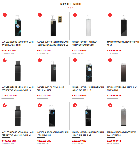 Thị trường máy lọc nước hiện nay được ví như một "ma trận" đang hỗn loạn với đủ mọi mức giá, từ vài triệu đến hàng chục triệu đồng. Theo ghi nhận phóng viên, trên thị trường hiện có rất nhiều sản phẩm máy lọc nước với hàng loạt các thương hiệu khác nhau. Nhiều sản phẩm được quảng cáo hết sức hấp dẫn cùng với những công dụng tuyệt vời như có thể lọc kim loại, thêm khoáng chất, thêm kiềm tốt như rau xanh… Với phân khúc giá rẻ, xuất hiện tràn lan các loại máy chỉ từ 1,5 đến 3 triệu đồng. Những sản phẩm này thường là hàng lắp ráp thủ công, sử dụng linh kiện trôi nổi, lõi lọc thô không rõ nguồn gốc.