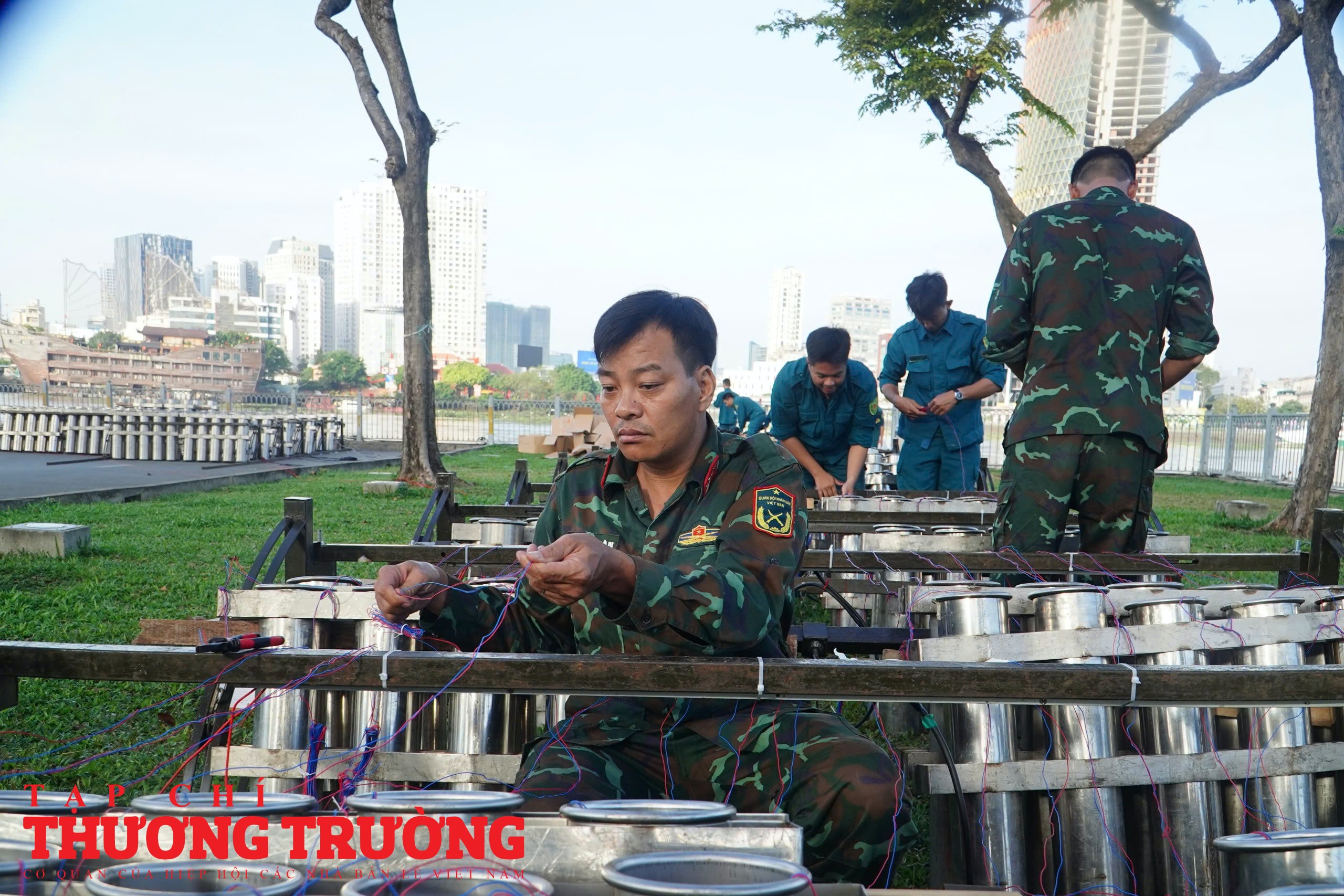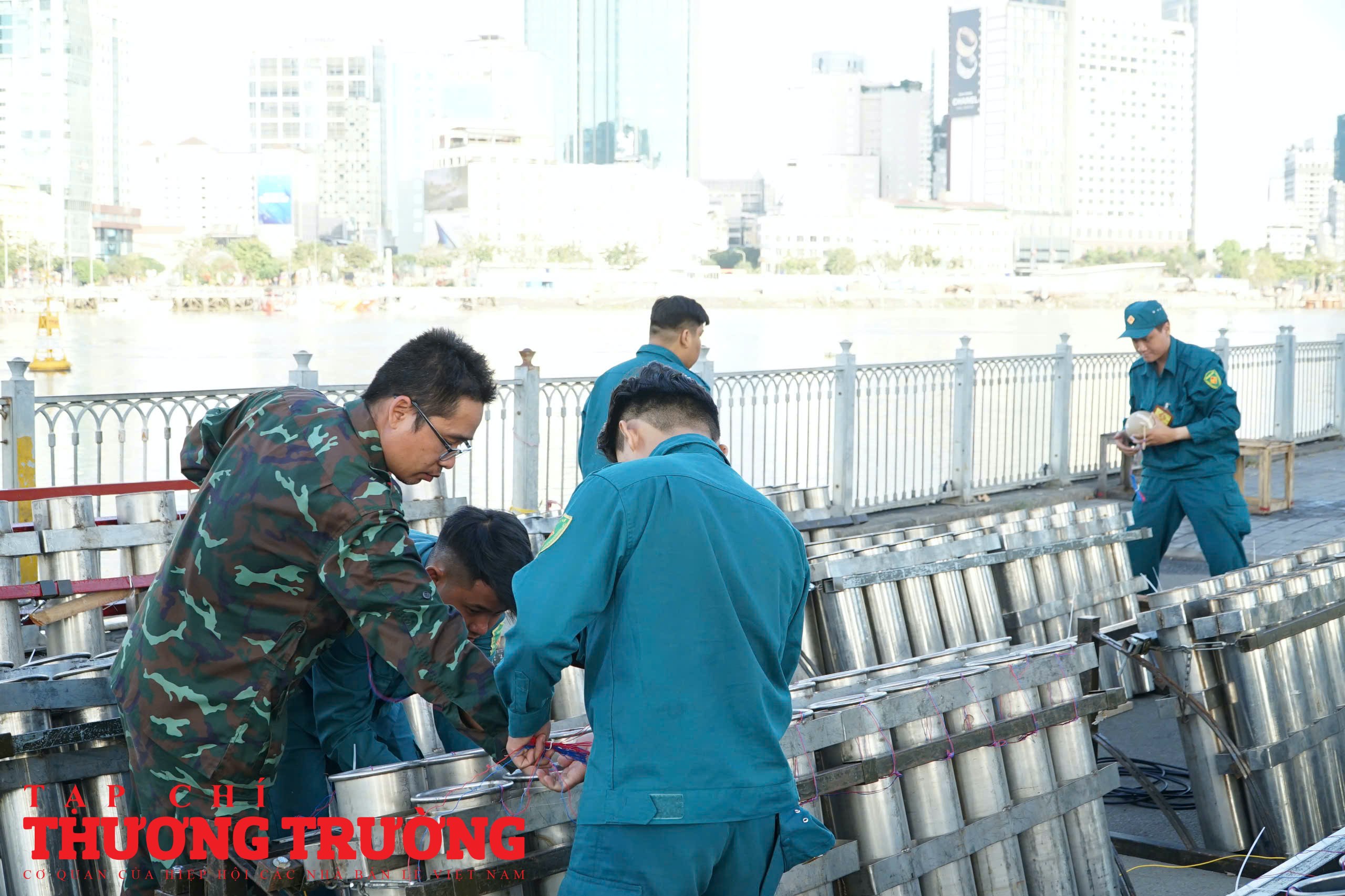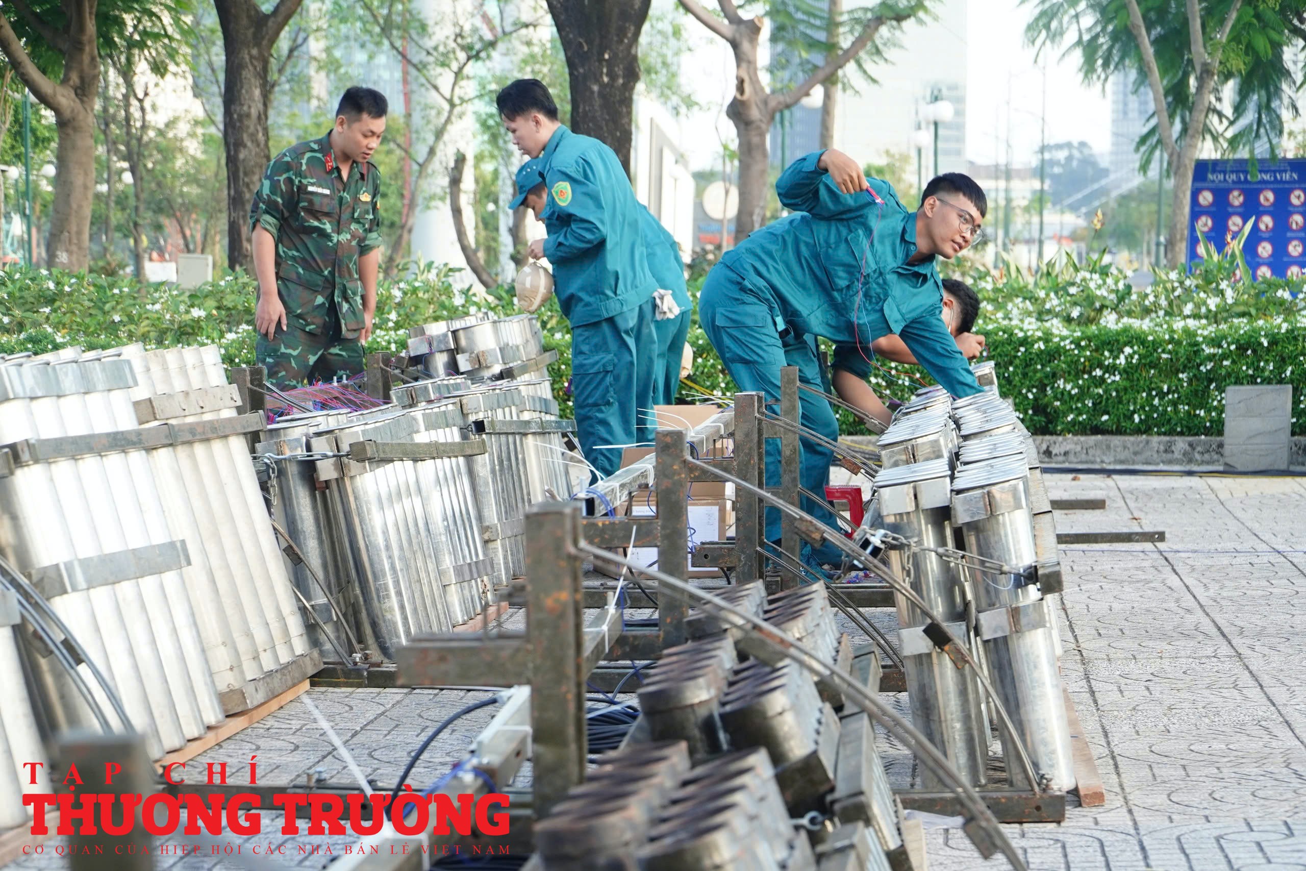 Hàng chục giàn pháo được bố trí dọc bờ sông, hướng tầm bắn ra khu vực trung tâm thành phố. Lực lượng Bộ Tư lệnh TP.HCM chia thành nhiều nhóm, rà soát từng ống phóng, kiểm tra dây dẫn và hệ thống kích hoạt. Mỗi thao tác đều được thực hiện cẩn trọng nhằm bảo đảm độ chính xác trước giờ khai hỏa.