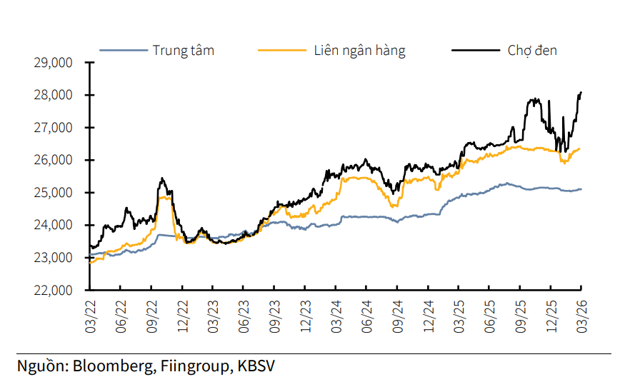 Trong quý 1/2026, tỷ giá chợ đen đã tăng tới 4,7% so với đầu năm, chạm mức kỷ lục khoảng 28.080 VND/USD trong hai phiên cuối quý. Diễn biến này không chỉ đến từ tác động của USD mạnh lên mà còn chịu ảnh hưởng lớn từ thị trường vàng trong nước.